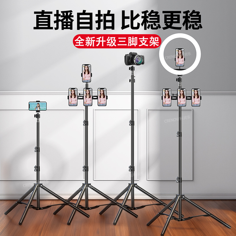 手机支架直播专用拍摄落地多功能俯拍架自拍杆三脚架带补光灯批发