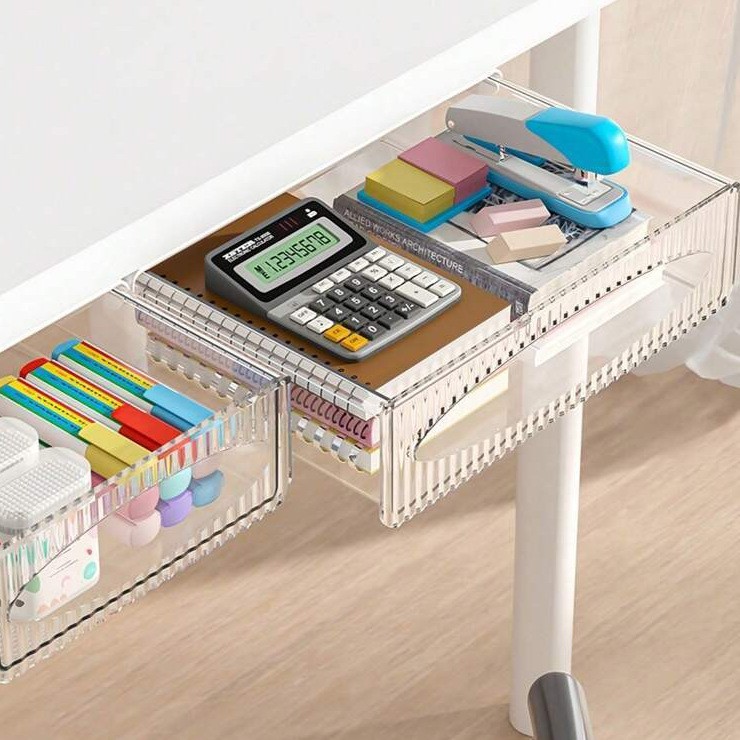 跨境桌下隐形收纳盒免打孔桌下抽屉置物架悬挂抽拉式收纳盒