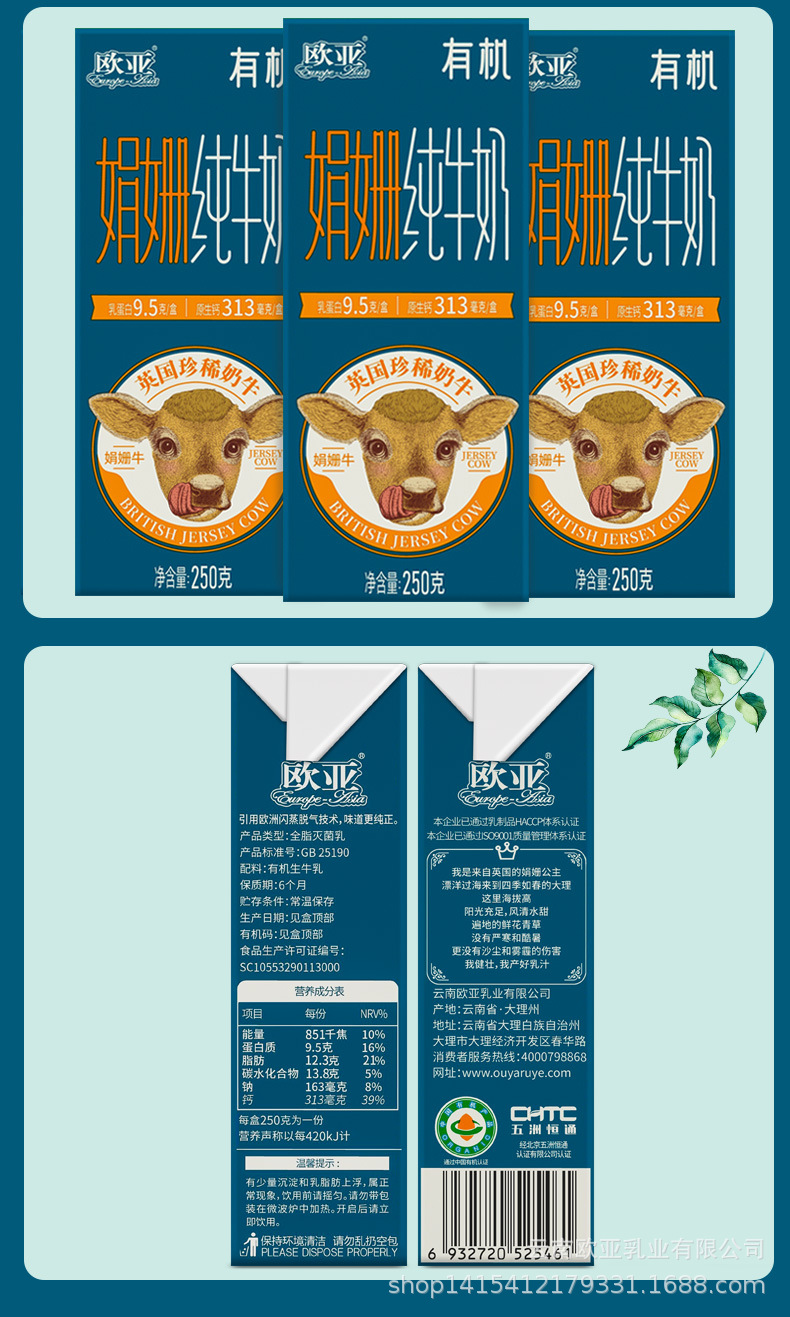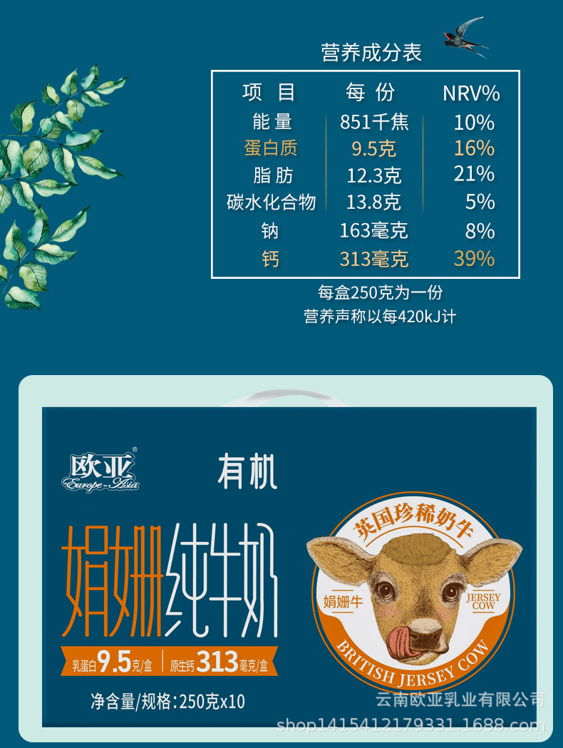 【娟姆牛乳】ユーラシア高原全脂娟姆有機純牛乳9箱箱のプレゼント