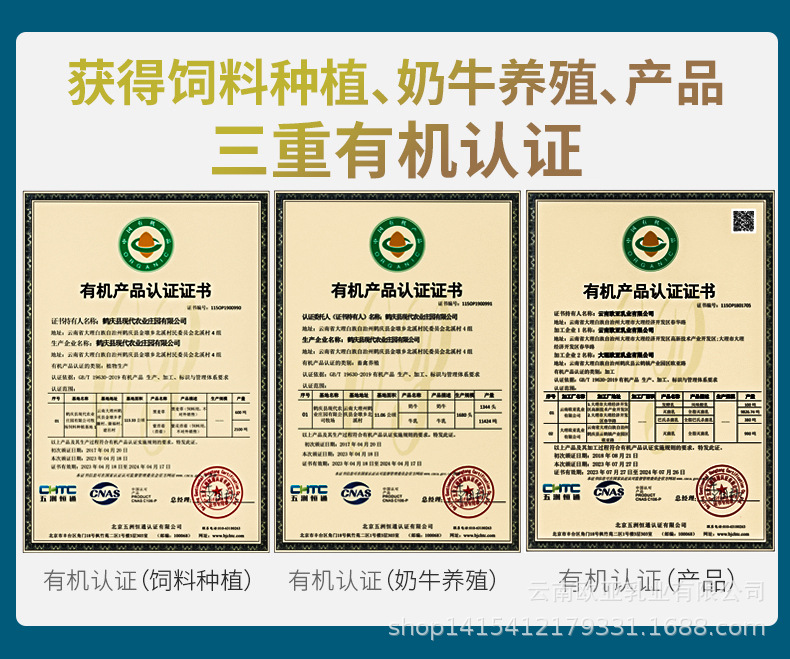 【娟山牛乳】欧亚高原産全脂娟山有機純乳ギフトボックス 大理贈答用 125g*24