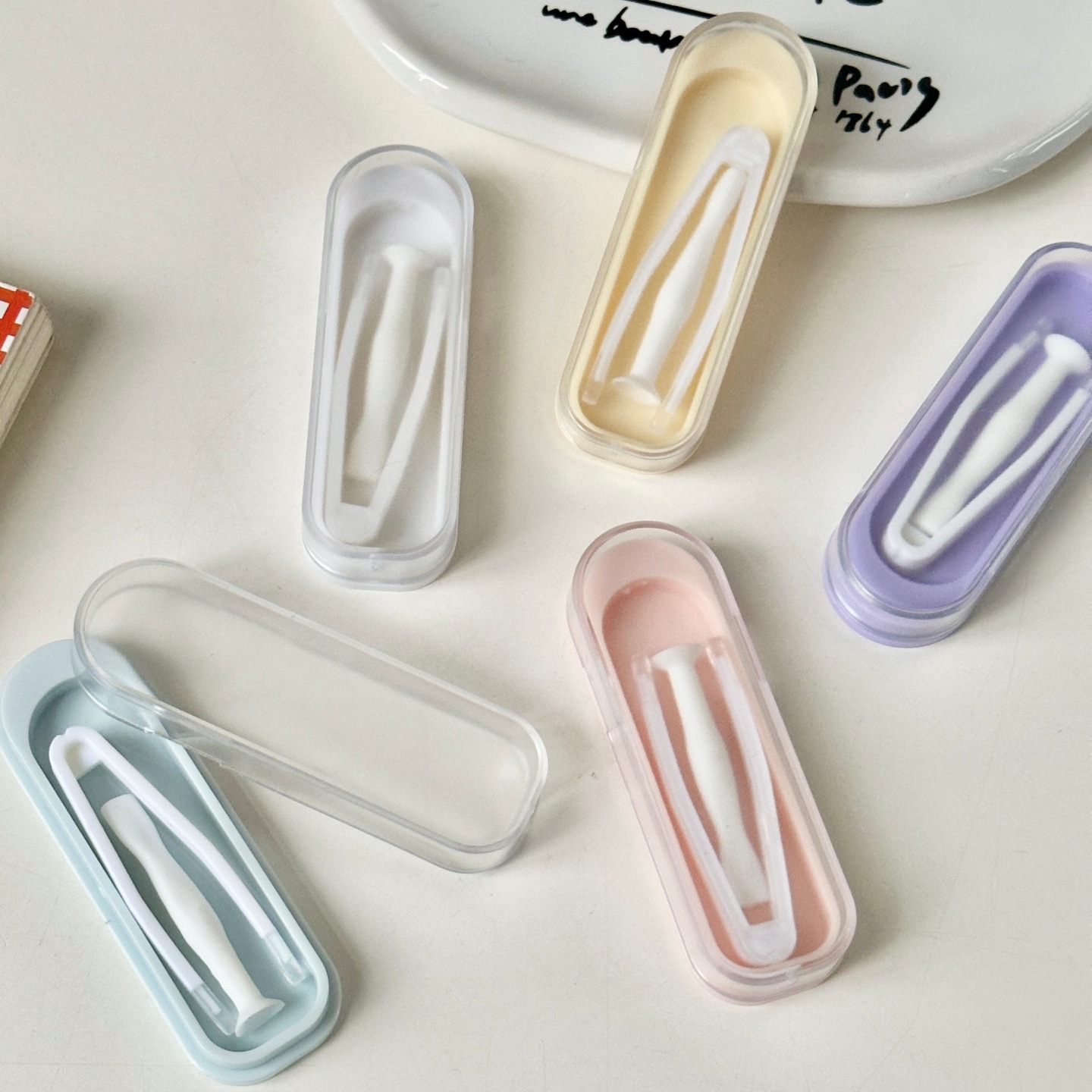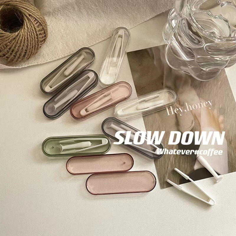 2.双联盒注入一层保存液后、装存镜片(注意镜片放入盒内,请勿放在双联盒边缘)拧紧盒盖.