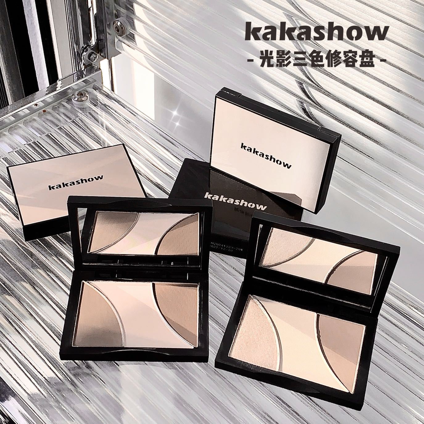 カカショー 光影三色コントゥアリングパレット ハイライター コントゥアリングパレット パウダーフリー 立体輪郭一体パレット シャドウコントゥアリングパレット