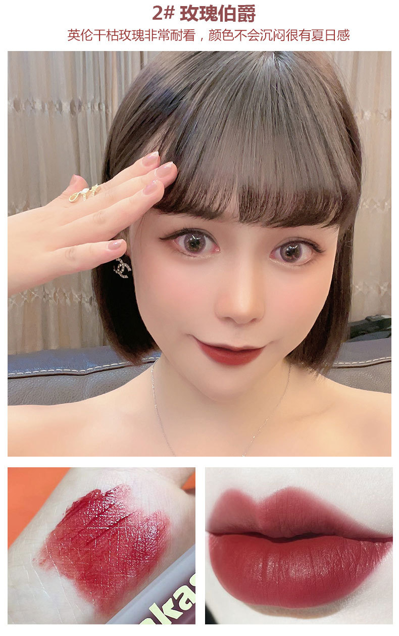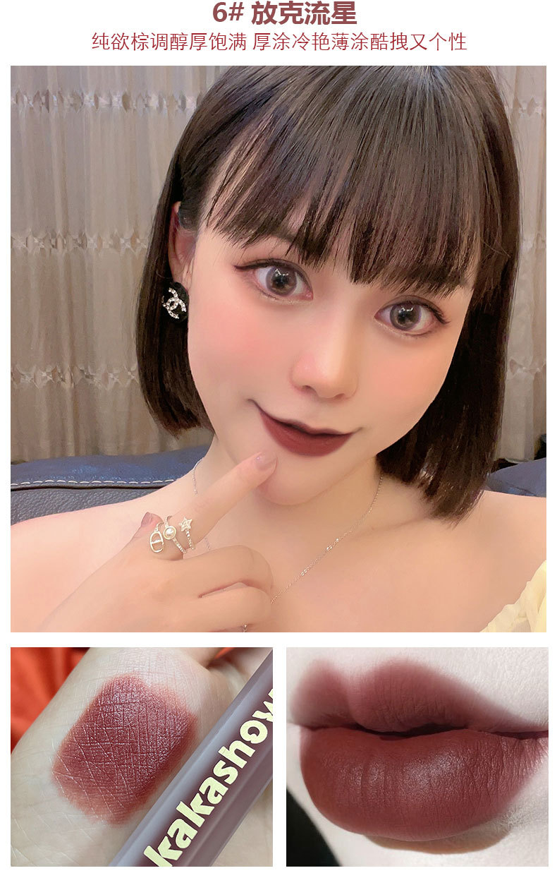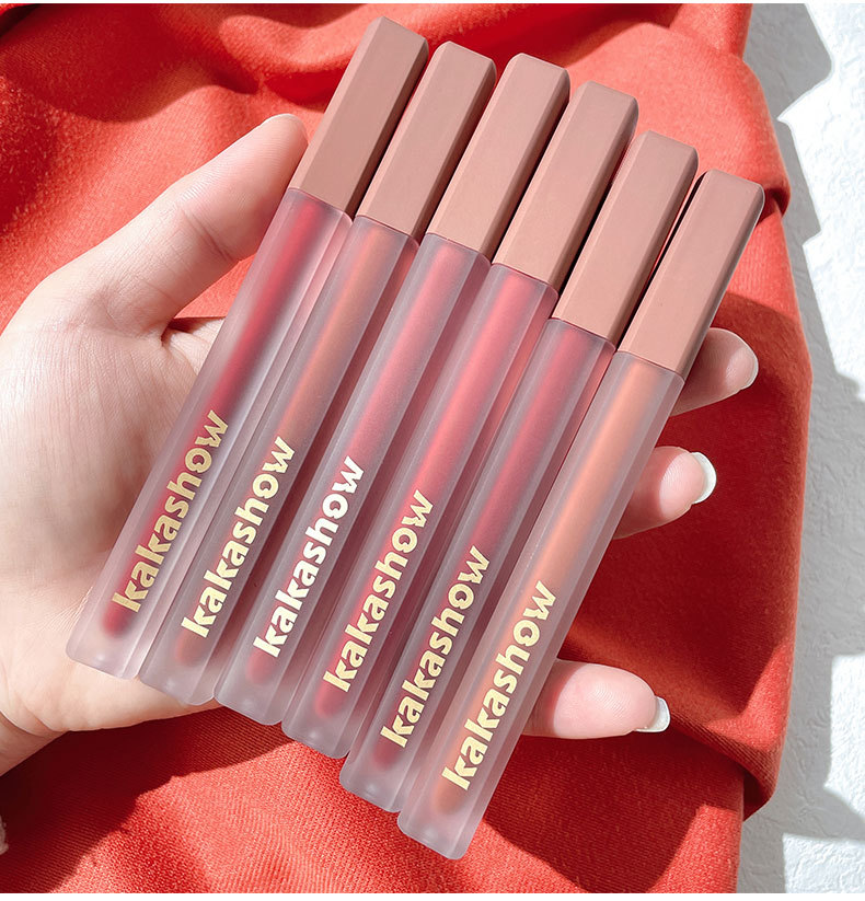 Kakashow粉サテン唇釉薬ベルベットマット素顔白口紅防水カップ唇彩唇泥学生