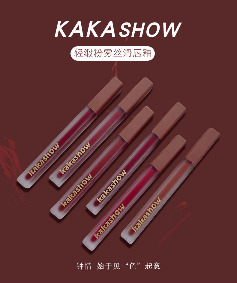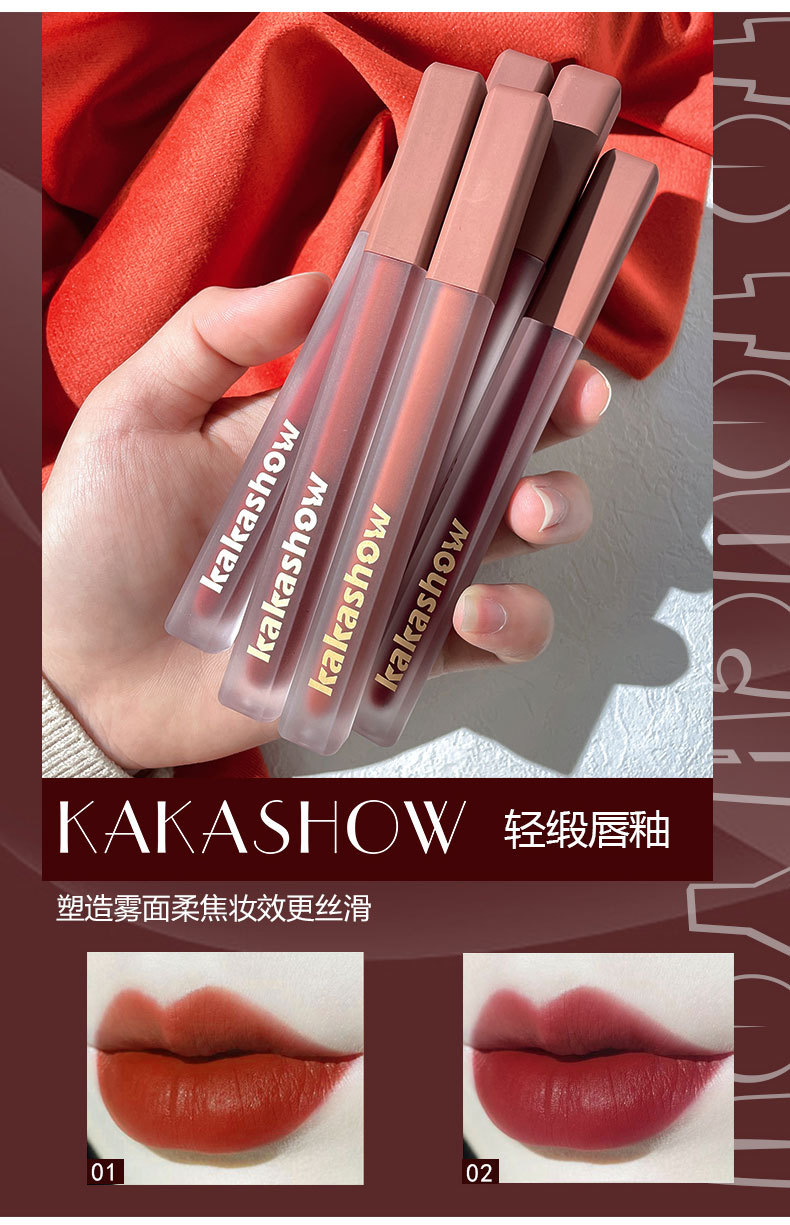 kakashow粉缎唇釉丝绒哑光显白口红不易沾杯唇彩唇泥化妆品批发