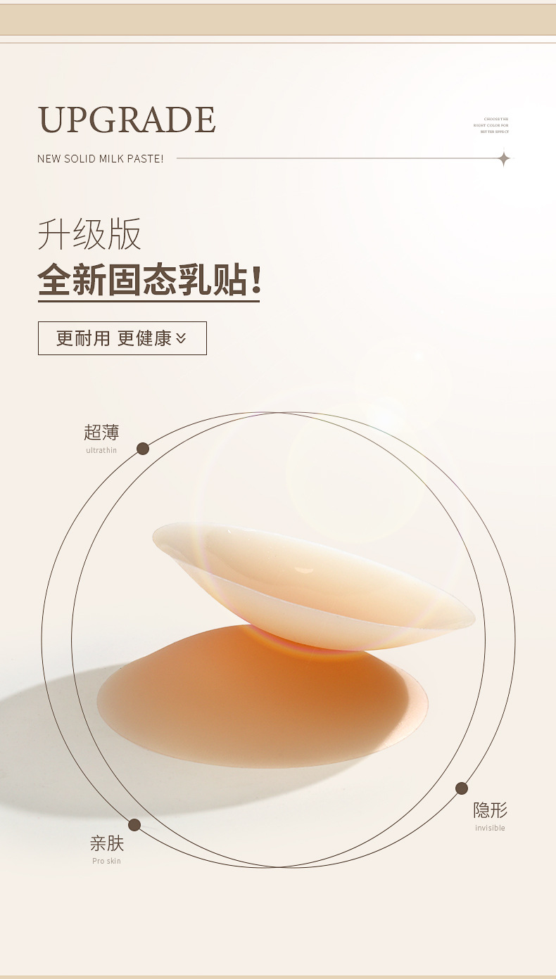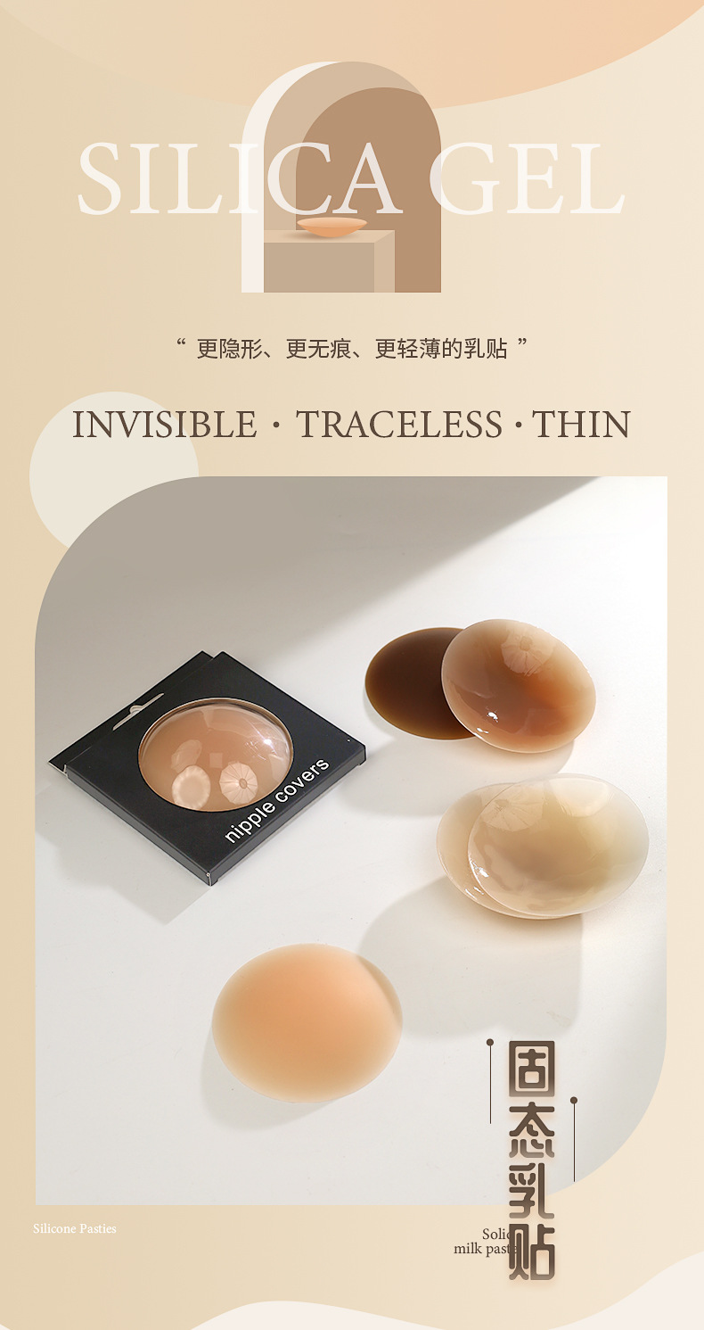 製品のセールスポイント 目に見えないブラックテクノロジーの薄い下着、露出防止、衝撃防止シリコン乳首パッチ、国境を越えた自己粘着性固形乳首パッチ