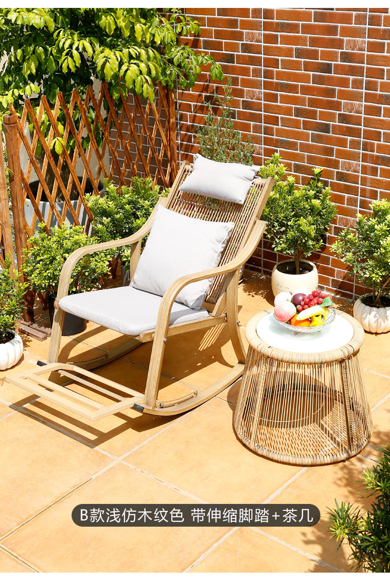 北欧のベランダのリクライニングチェアの屋外の露店の藤編みのテーブルと椅子のシンプルな現代の屋外の椅子のレジャーの庭の花園のロッキングチェア
