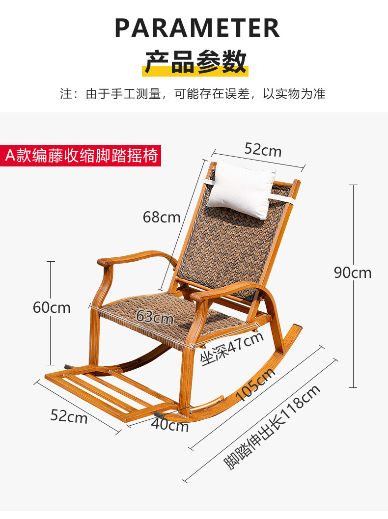 バルコニーカジュアルロッキングチェア籐编み怠け者椅子リビングルーム老人大人ロッキングチェア家庭用大人お昼寝シングルロッキングチェア
