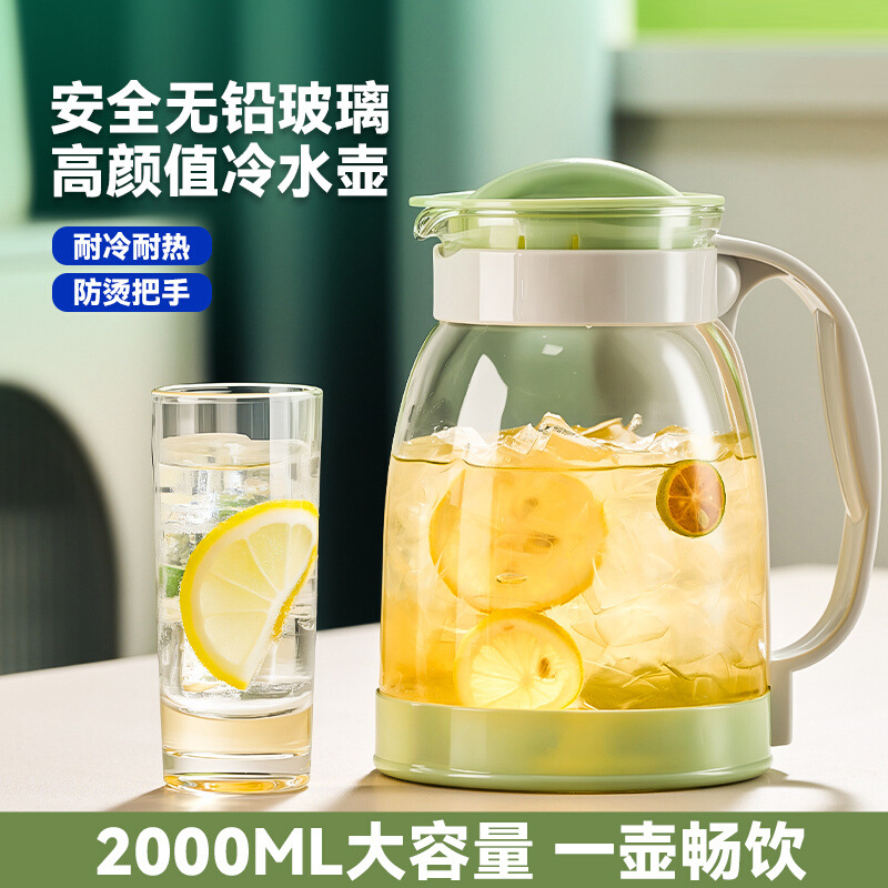 クローブやかん2lコールドやかん厚い防爆ガラス冷たいやかん大容量オフィスティーポットジュースミルク