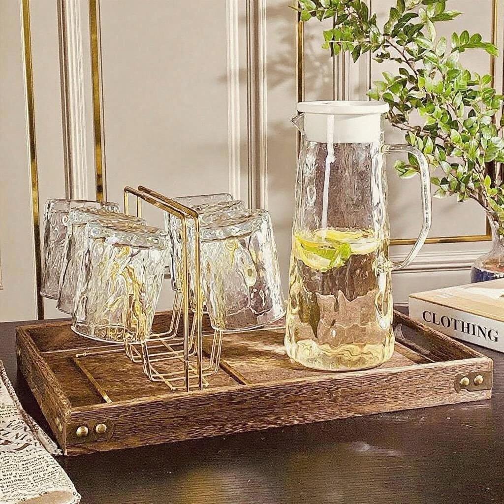 1ポット6カップトレイ付き軽量高級大容量耐熱冷水ケトルウォーターカップホームリビングルームティーカップティーポットホーム