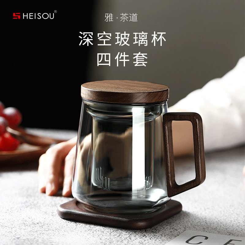 玻璃茶杯茶水分离高档杯子男款办公室喝茶杯水杯女个人专用泡茶杯