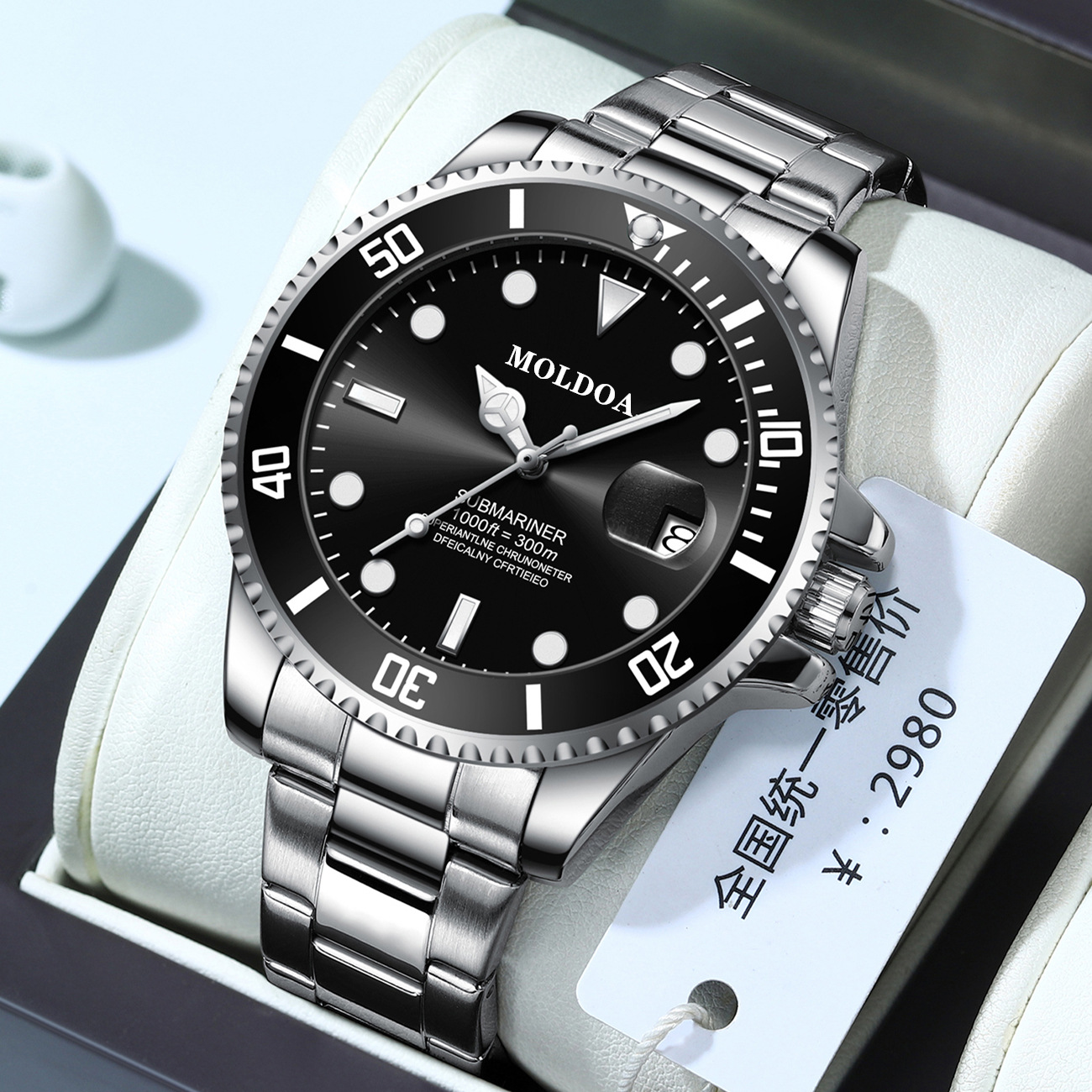 路易爵伦跨境外贸手表真三眼男士緑水鬼系列夜光潮流防水现货批发