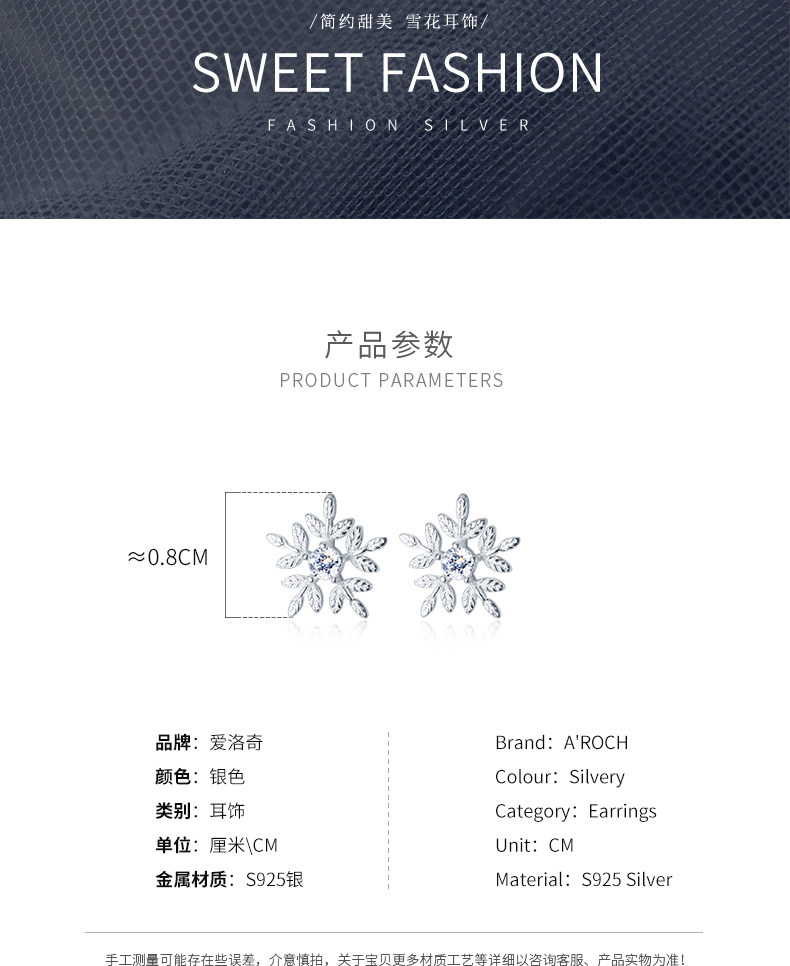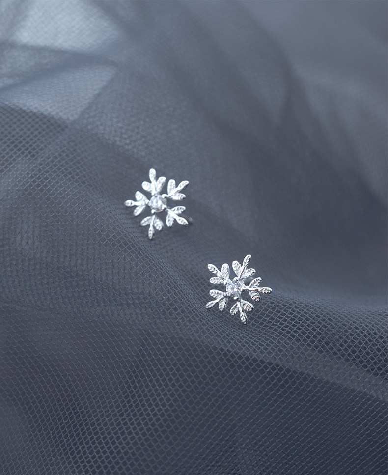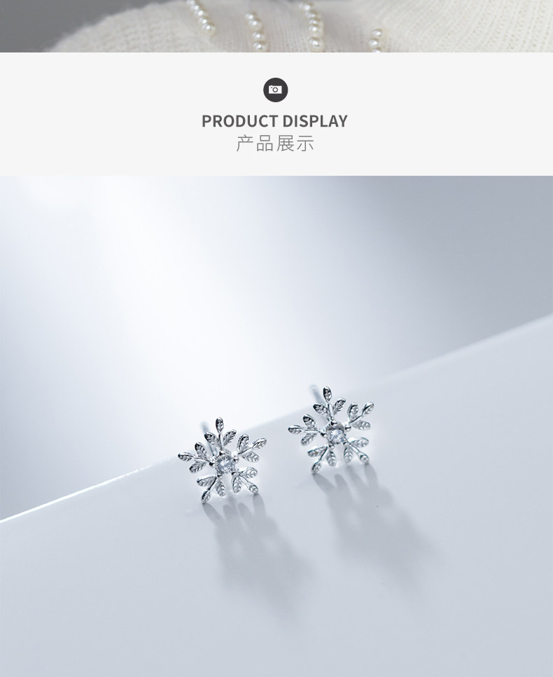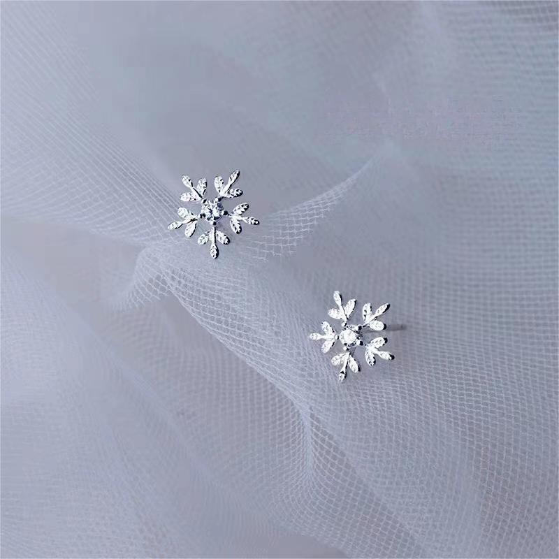 S925銀のクリスマス系の清新な雪の花の甘いイヤリングの女性は簡単にダイヤモンドの気質の耳飾りのE0104-1を入れます。