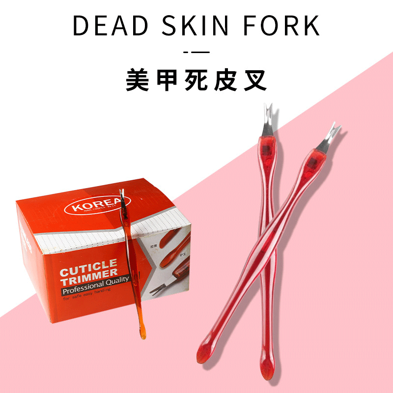 ネイルツールの赤い箱の死んだ皮のフォークの鋭利な死んだ皮を押して爪を刺します。