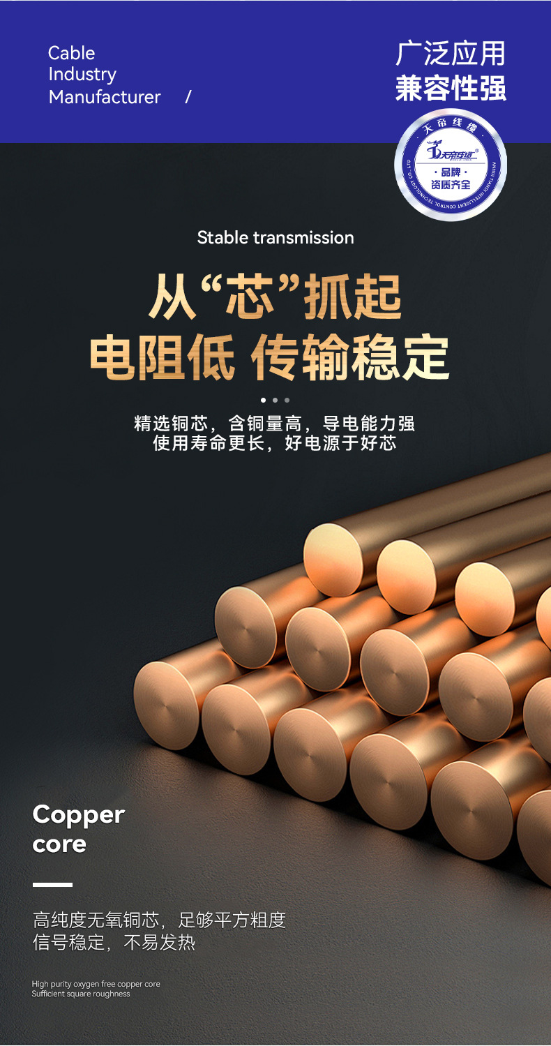 工場直販 天帝RVVケーブル 3456芯 2.5 1.0 4 6平方 柔軟線 無酸素銅 国家規格 シールド付き