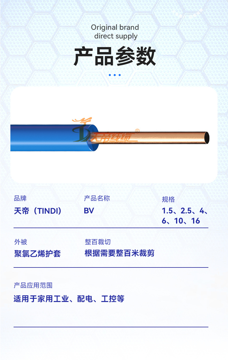 メーカー直販天帝BV電線無酸素銅芯難燃1.0 1.5 2.5 4 10平方単芯銅線
