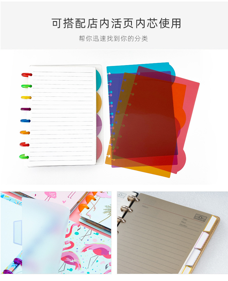 Ringnoteカラーきのこ穴バインダー本アクセサリーppクリアインデックスページ仕切り用纸スタンダード手帐仕切りページ