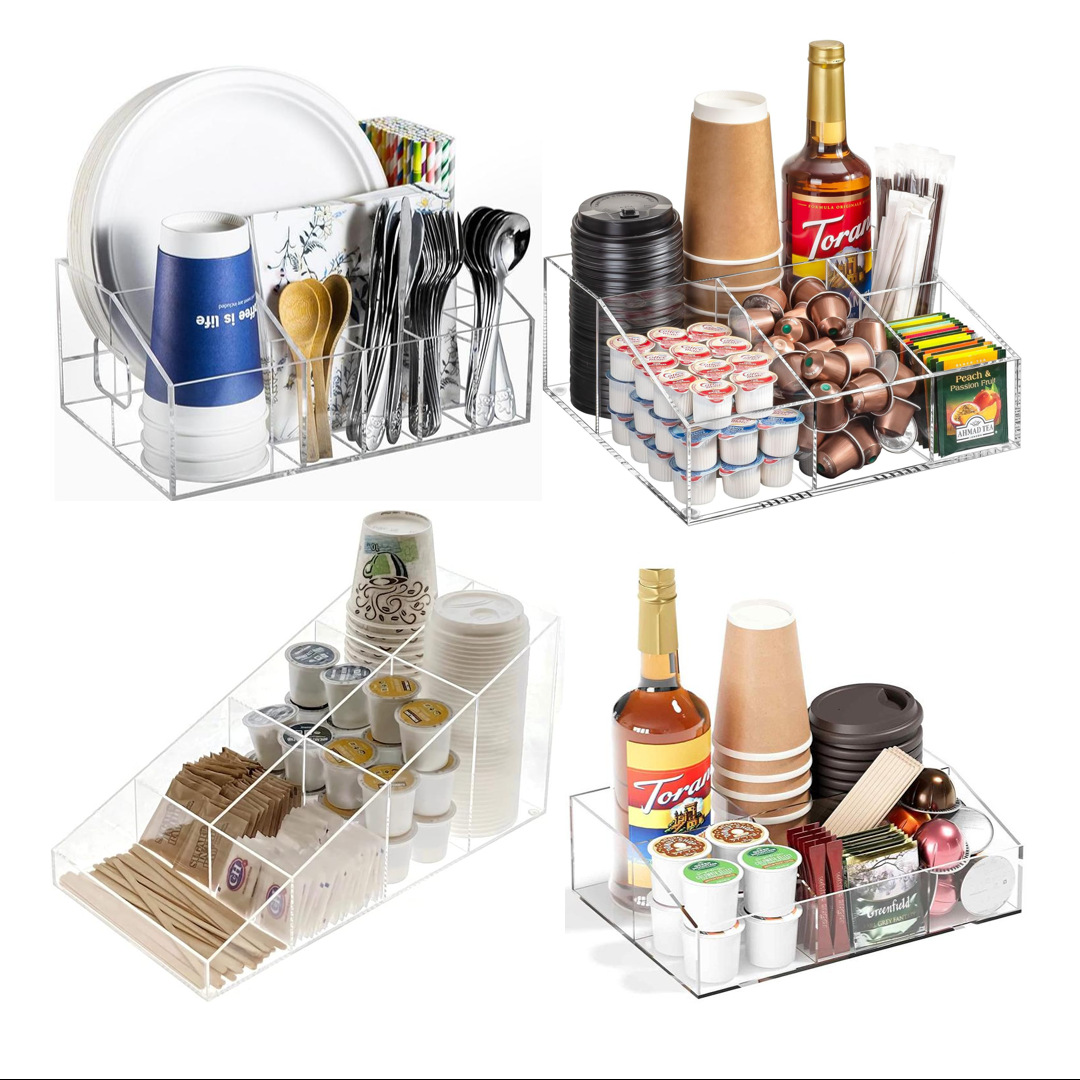 アクリル仕切り収納ボックス多格子コーヒーカプセル収納ボックス茶包食器コーヒーバーステーション収納棚