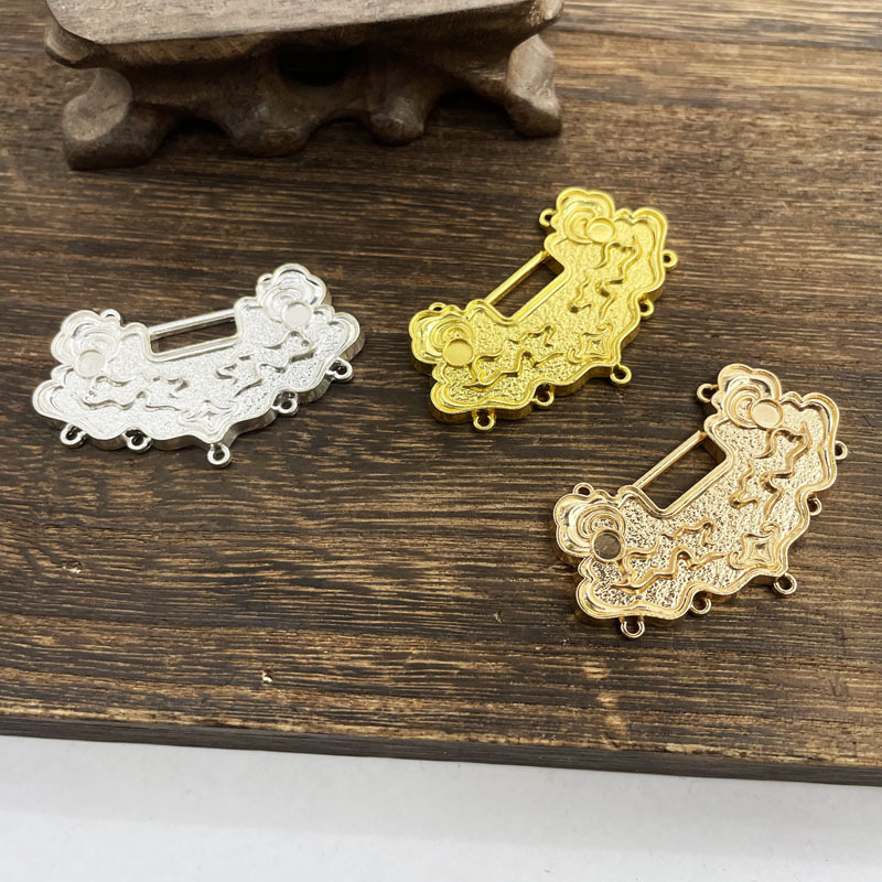 古风diy配件35*40mm仿铸铜金锁吊坠 保色电镀璎珞流苏挂件发簪材