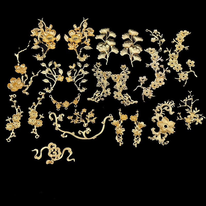 百合花花枝新商品木の葉合金部品diy古風ヘアピン