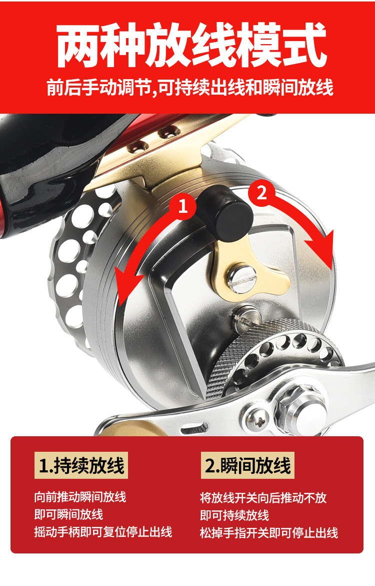 科美龙全金属ラフティングリール、リリース機能付きワンタッチライン出し、マイクロリードリール、橋釣りリール、ラフティングリール