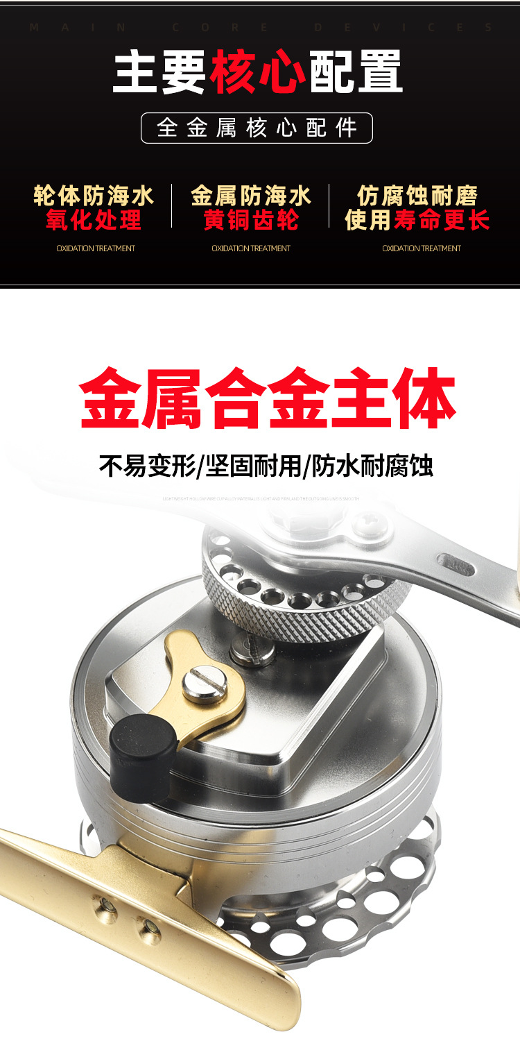渔轮全金属微铅磁力缓降筏钓轮筏杆冰钓轮桥钓前打轮阀轮鱼轮批发