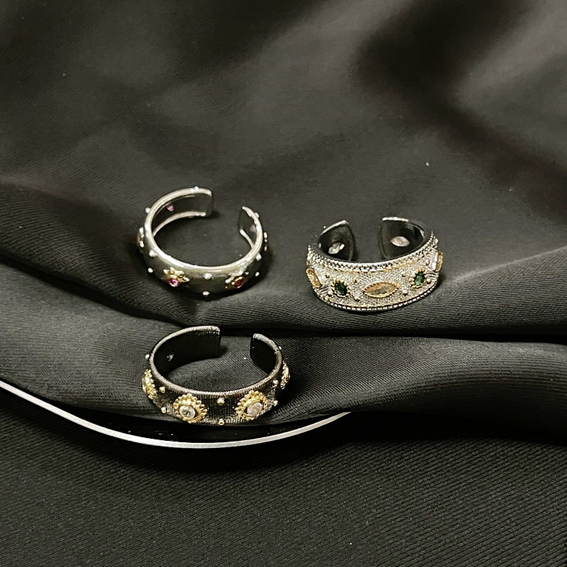 ニッチデザインダークスタイルスイートクールスタイルダイヤモンド個性ハイエンドオープニングインコールドスタイルプリーツオープンリング