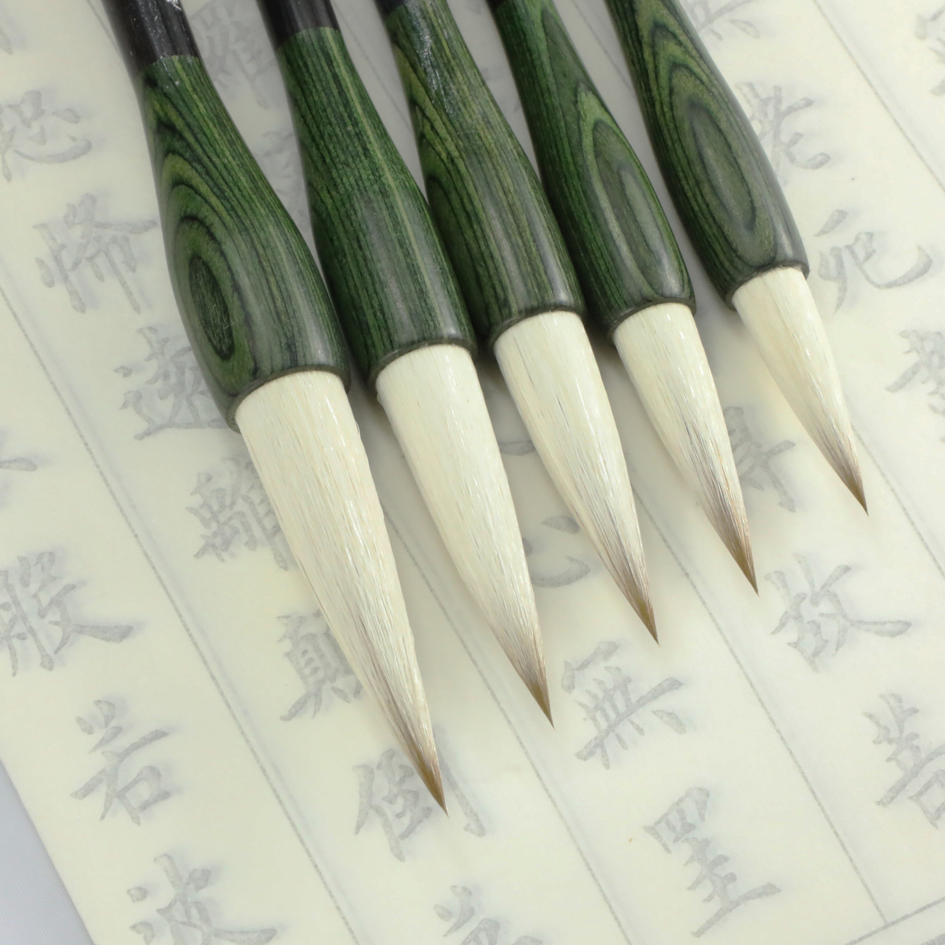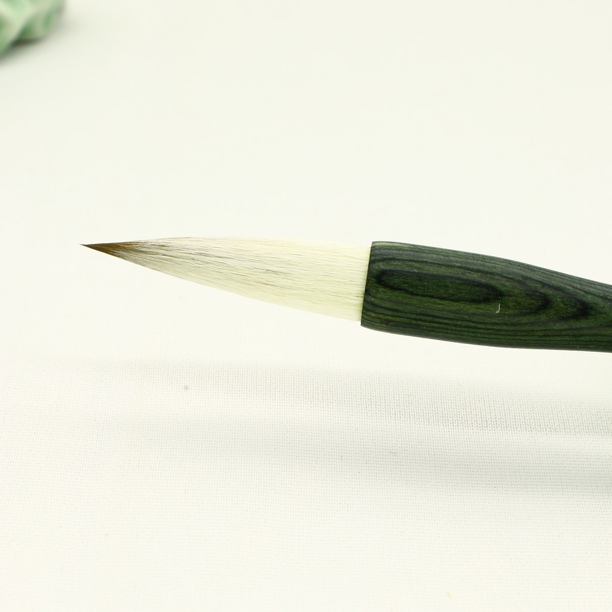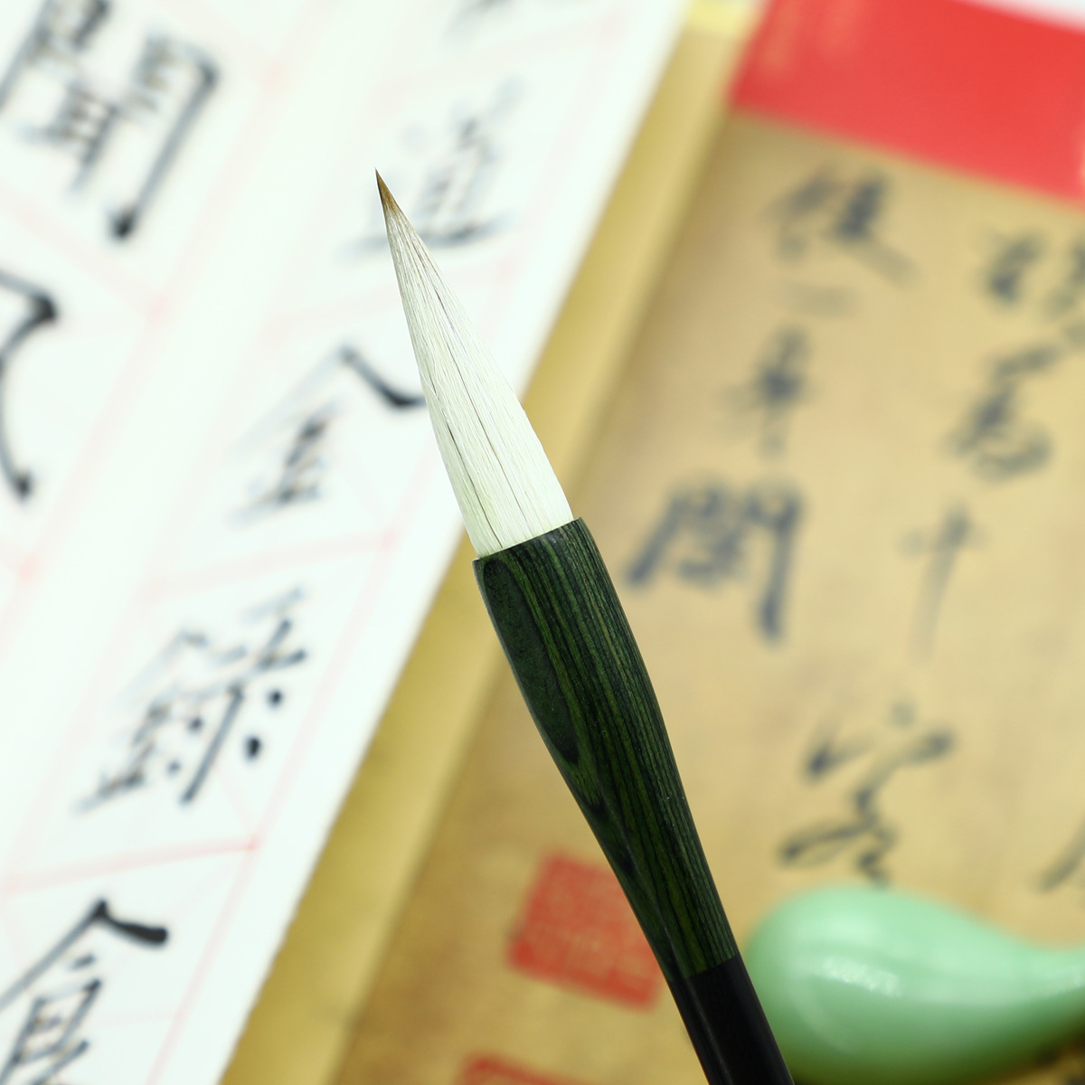 書道用毛筆、心地よい筆毛、内側は狼毛、外側は細い羊毛、心地よい緑檀の筆筒