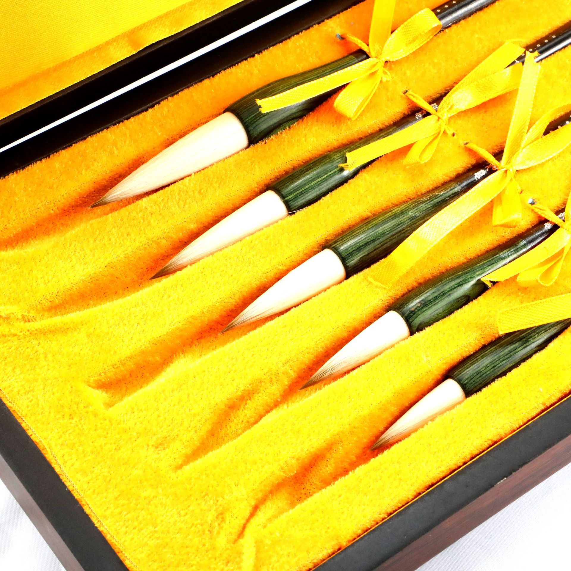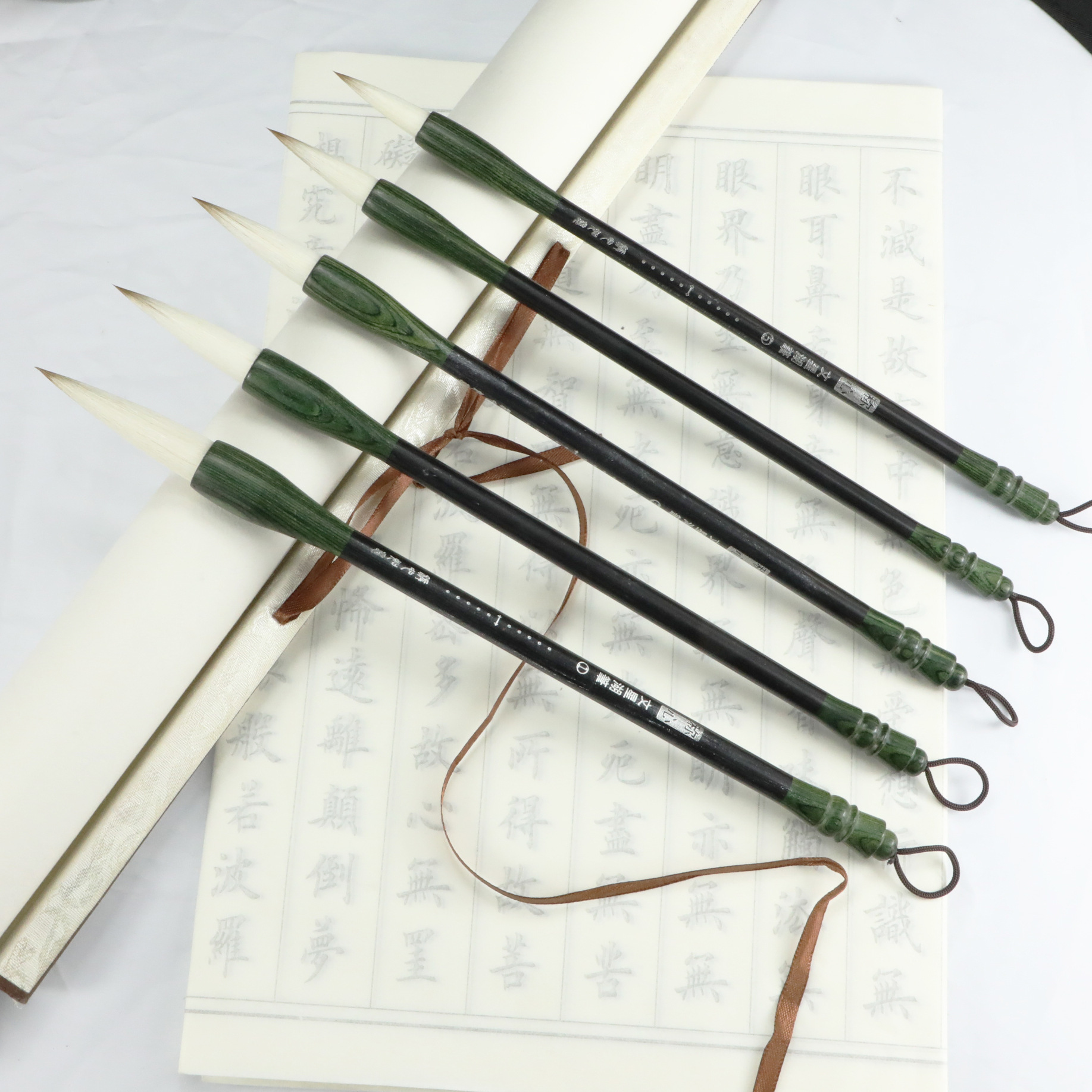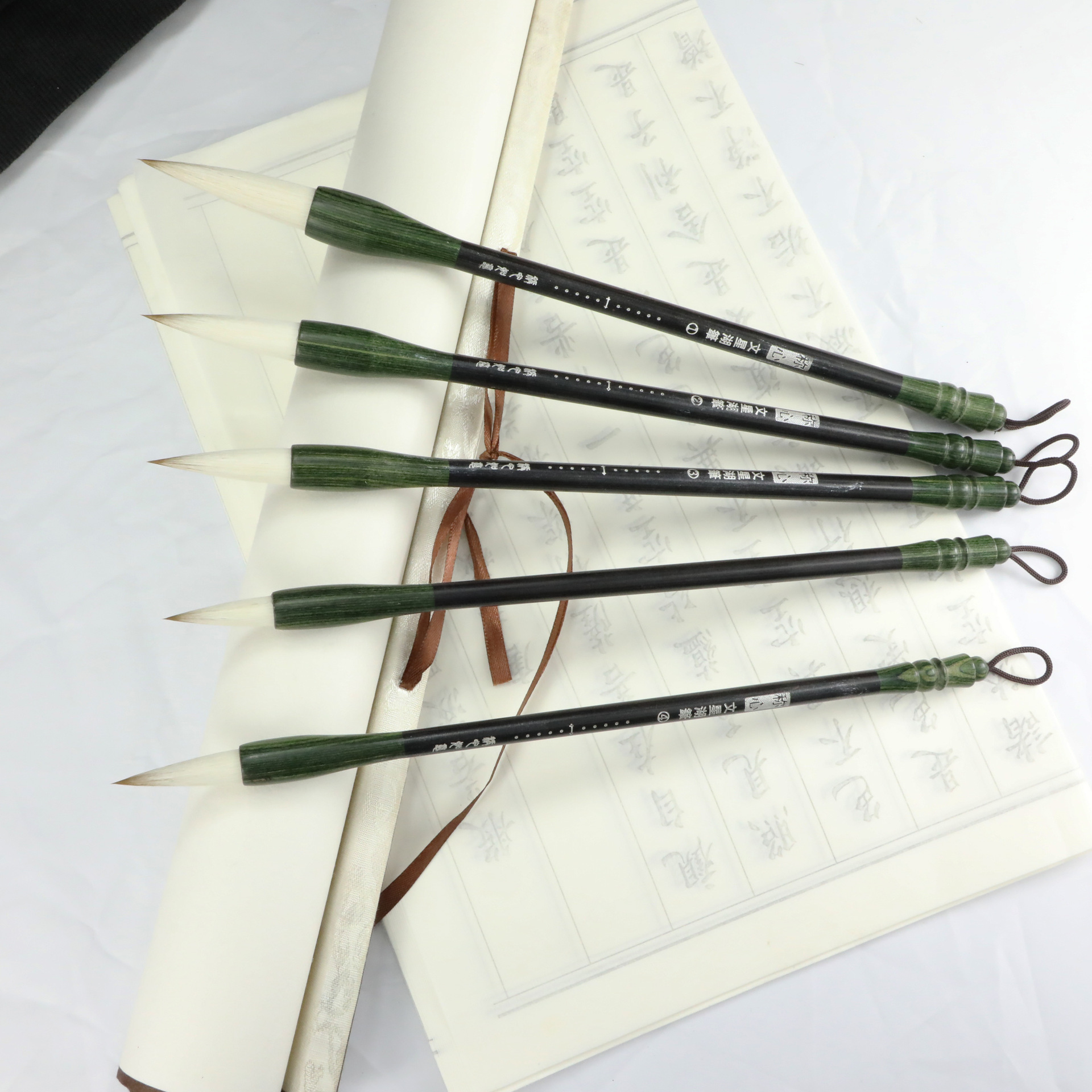 書道用毛筆、心地よい筆毛、内側は狼毛、外側は細い羊毛、心地よい緑檀の筆筒