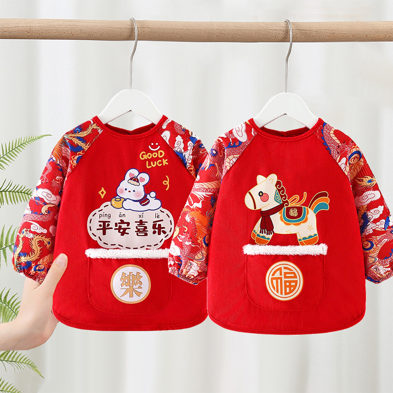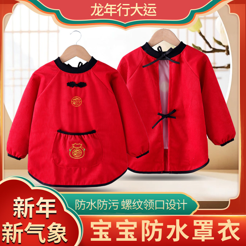拜年服儿童罩衣秋冬宝宝新年外穿防水防脏围兜婴儿吃饭卡通小罩衣