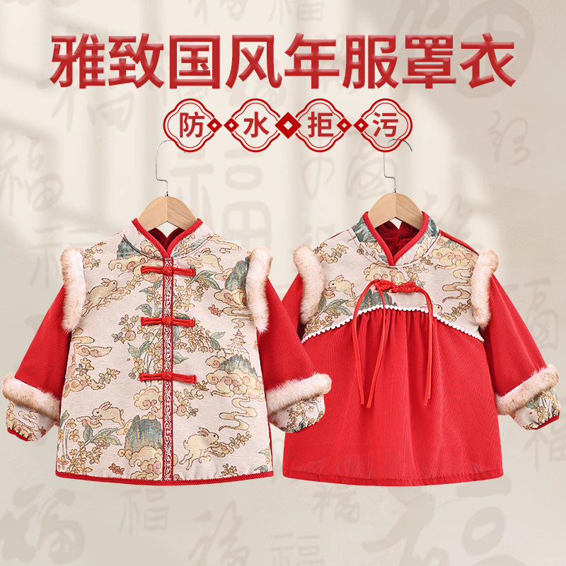 2025新款中国风女童拜年服男宝宝冬季中式罩衣过年儿童国风反穿衣