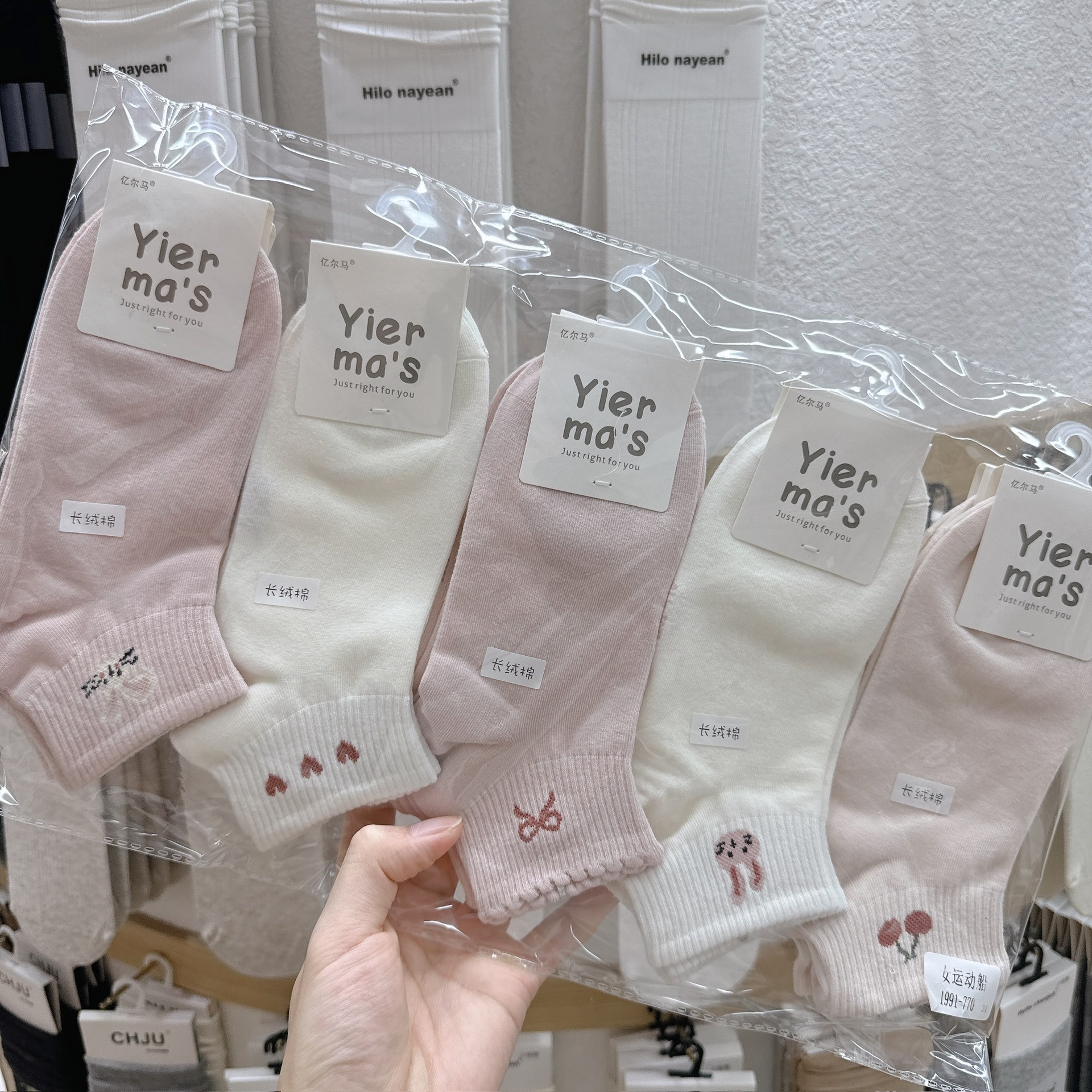 新しい Yilm 春と秋の靴下スポーツ女性の靴下カジュアルファッショントレンディな靴下コーマ綿ショートチューブ女性のボートソックス