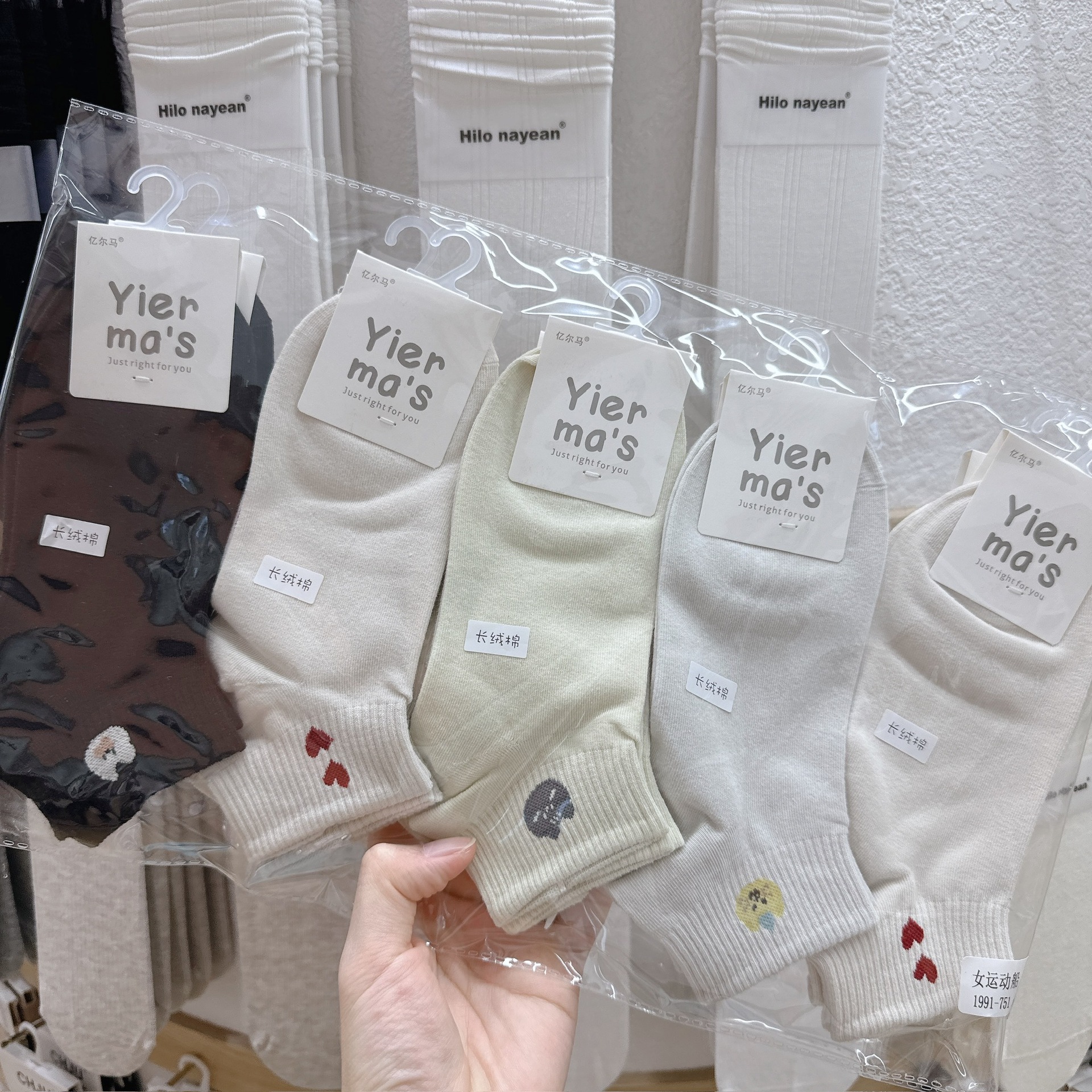 亿尔马秋冬新款精梳棉卡通韩系中筒运动女袜透气吸汗亿尔马袜子