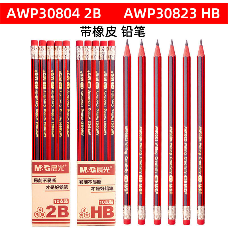 朝光30804鉛筆hb鉛筆小学生は消しゴム付き赤い棒2b六角30823幼稚園のペンを書く