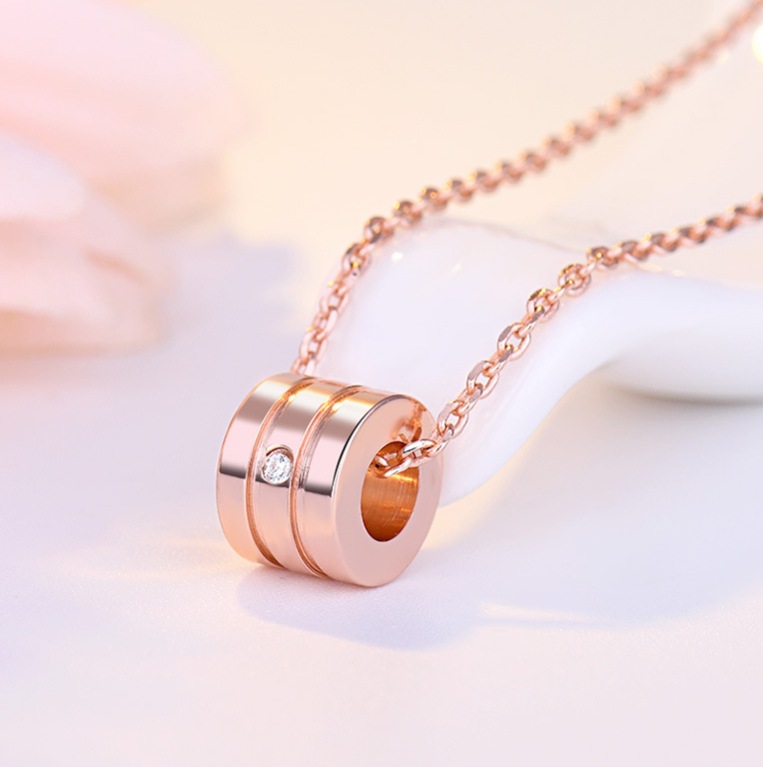 韓国版の小さい腰のチタンのネックレスの女性の鎖の骨の鎖のネットの赤いペンダントの清新なバラの金色のチタンの鋼はドリルの小さいネックレスを持ちます。