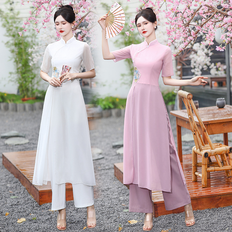 足浴養生館の技師の作業服は耳茶芸師の柔らかい式の工衣の国風の中国式のグラデーションのプリントの長いズボンを採取します。