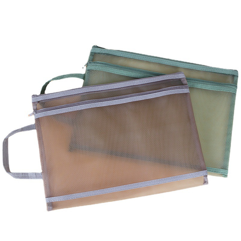 分類書類袋モランディ色大容量二重ファスナー作業袋透明ネット糸a4資料袋塾袋