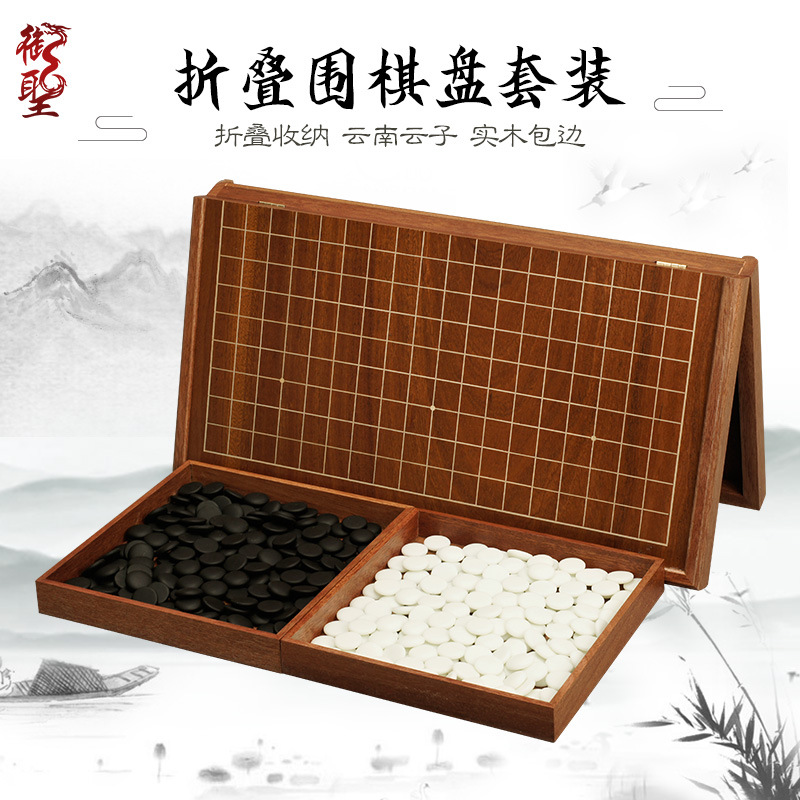 御聖囲碁碁盤セット折り畳み式雲南雲子駒標準19線携帯木製碁盤に棋缶付き