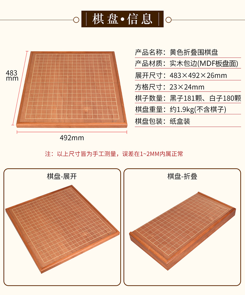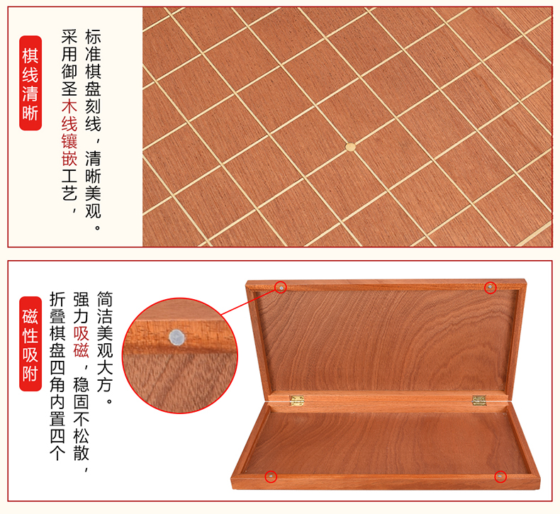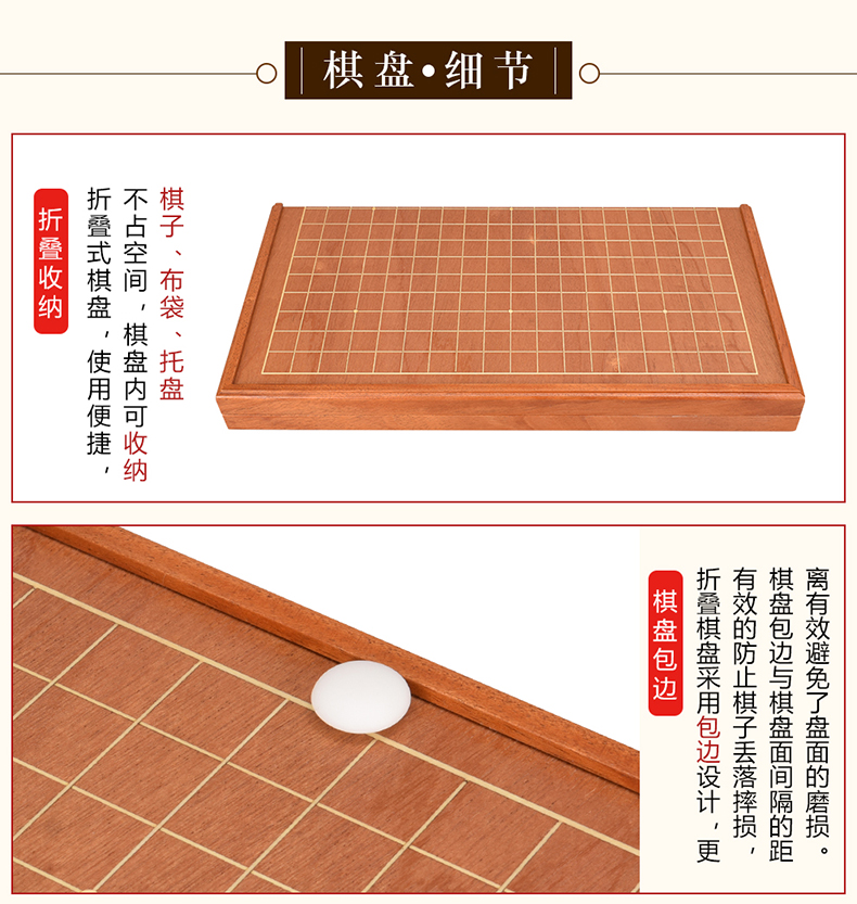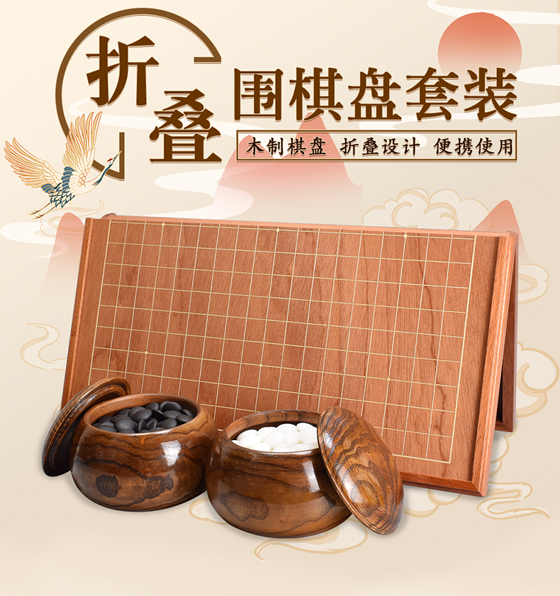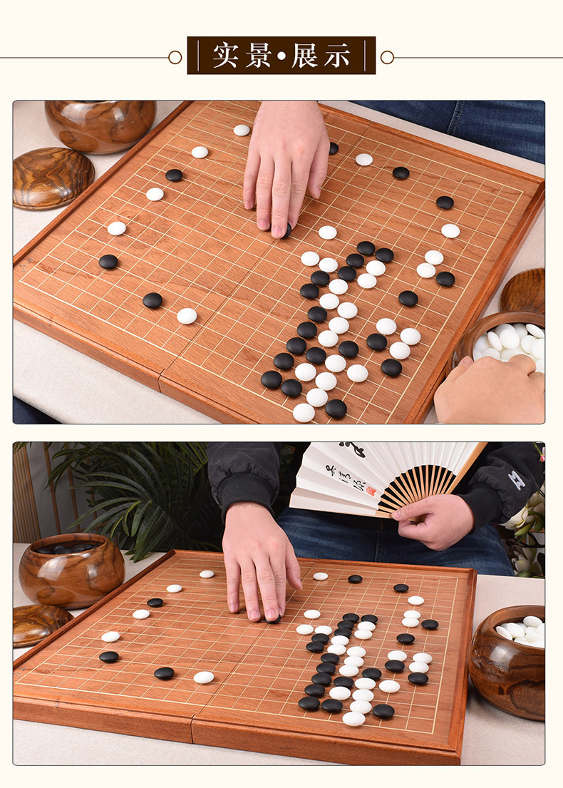 御聖囲碁セット折りたたみ木製片面両面囲碁子供入門囲碁碁盤赤黄
