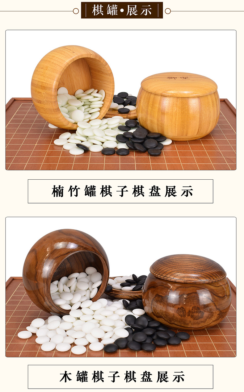 囲碁セット 竹製盤 低蓋竹製棋罐 精製磁器駒 五目並べ駒 大人 子供 学生向け