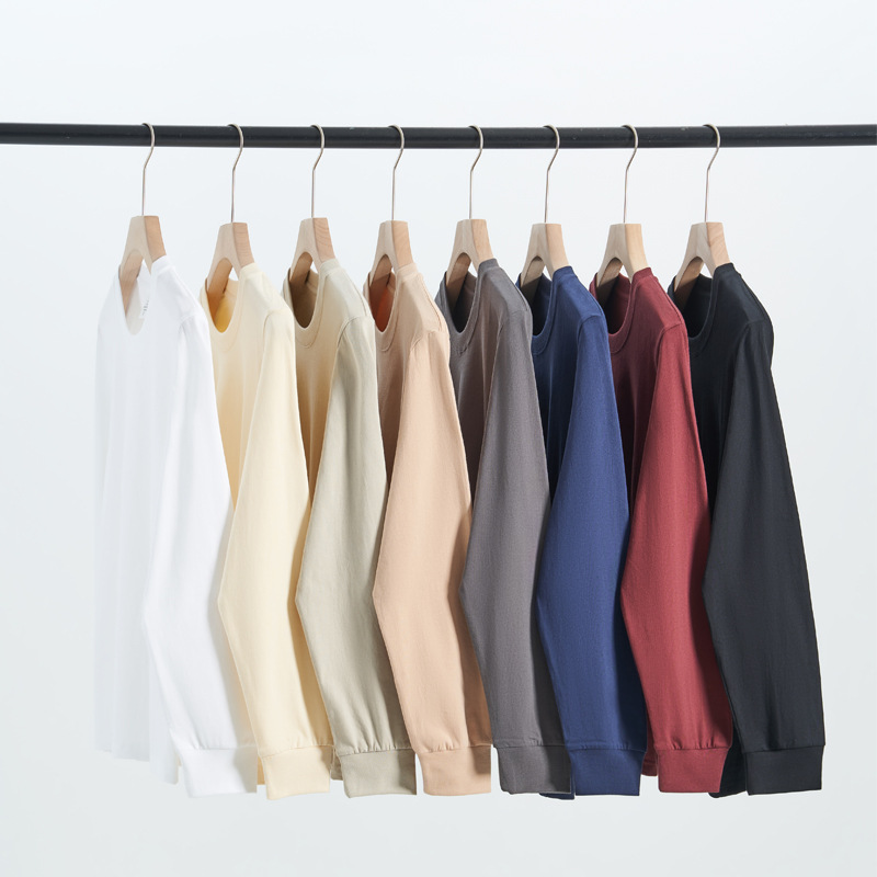 2025新款螺纹袖口长袖T恤 100%纯棉百搭男女早秋打底衫基础款内搭