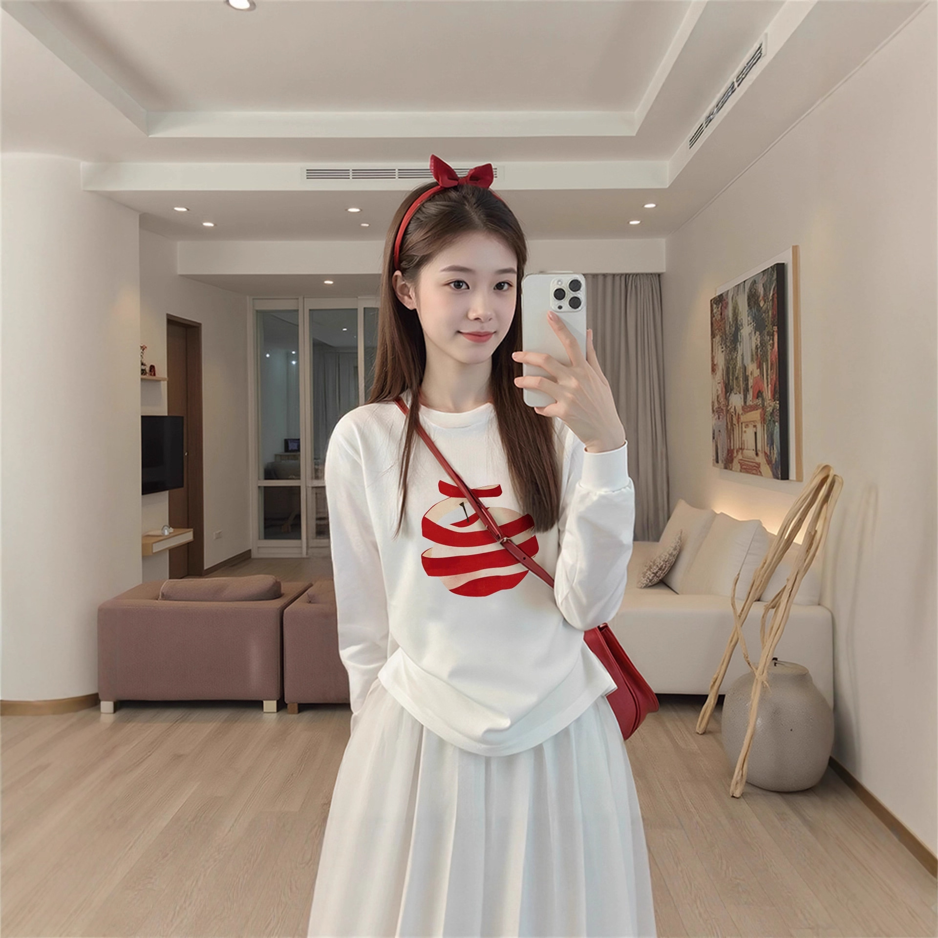 白色长袖t恤女2025新款爆款早秋纯棉宽松显瘦内搭打底衫小众上衣