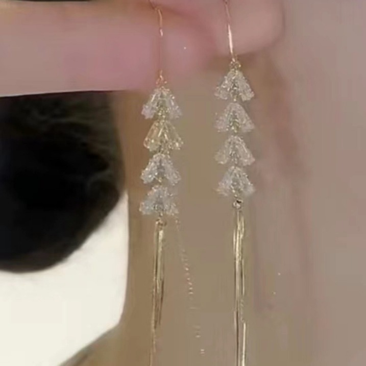 925银针夸张长款锆石流苏耳环小众轻奢高级感耳饰个性夸张耳坠女