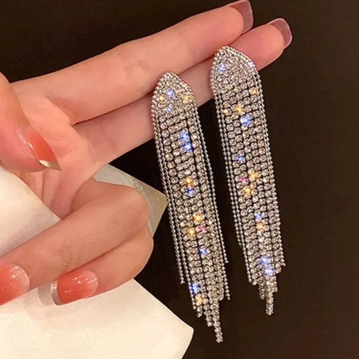 欧美爆款超闪夸张流苏耳环女时尚轻奢高级感潮流精致百搭长款耳饰