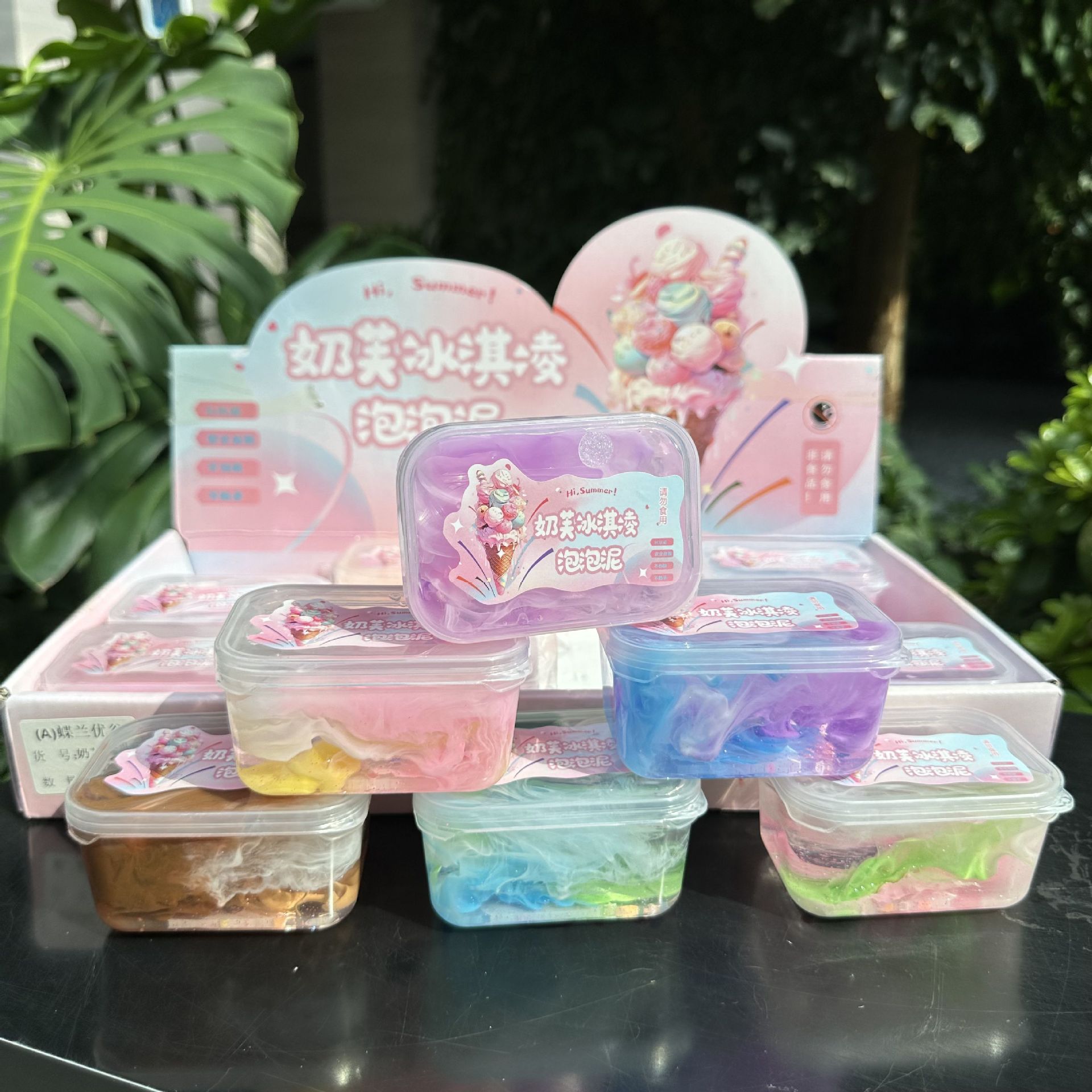 新品史莱姆盒装高透起泡胶高颜值儿童解压玩具爆款安全3C假水批发