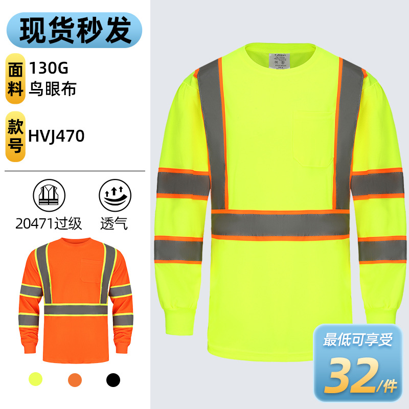 アマゾン夏反射tシャツ男性現物工事建築警告反射服日焼け止め通気長袖反射服