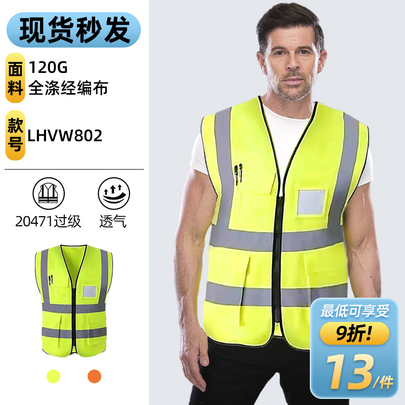 反射ベスト反射馬甲代運転環衛勤務交通騎行施工印字多ポケット反射服