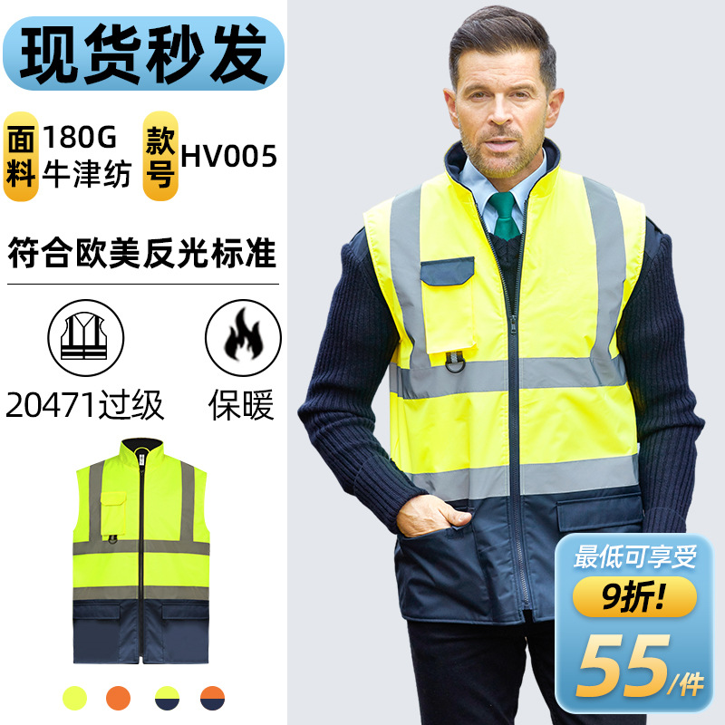 国境を越えた多ポケット反射ベストスポット秋冬保温防水工装馬甲工事建築警告反射服