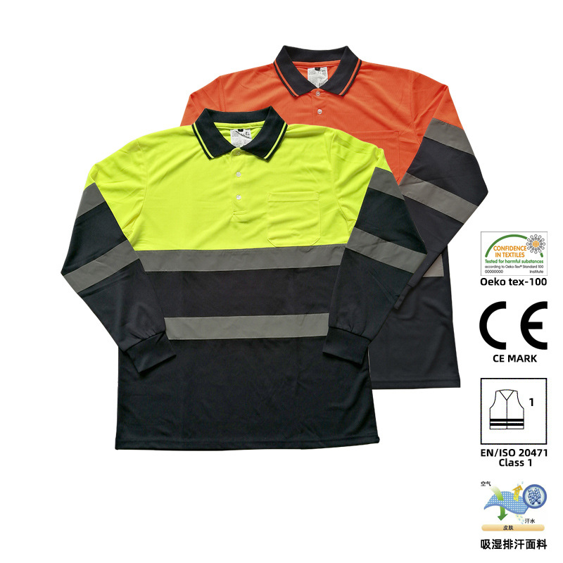 国境を越えた道路工事用長袖ポロシャツ作業服、外国貿易速乾反射安全作業服、建築用Tシャツのカスタム