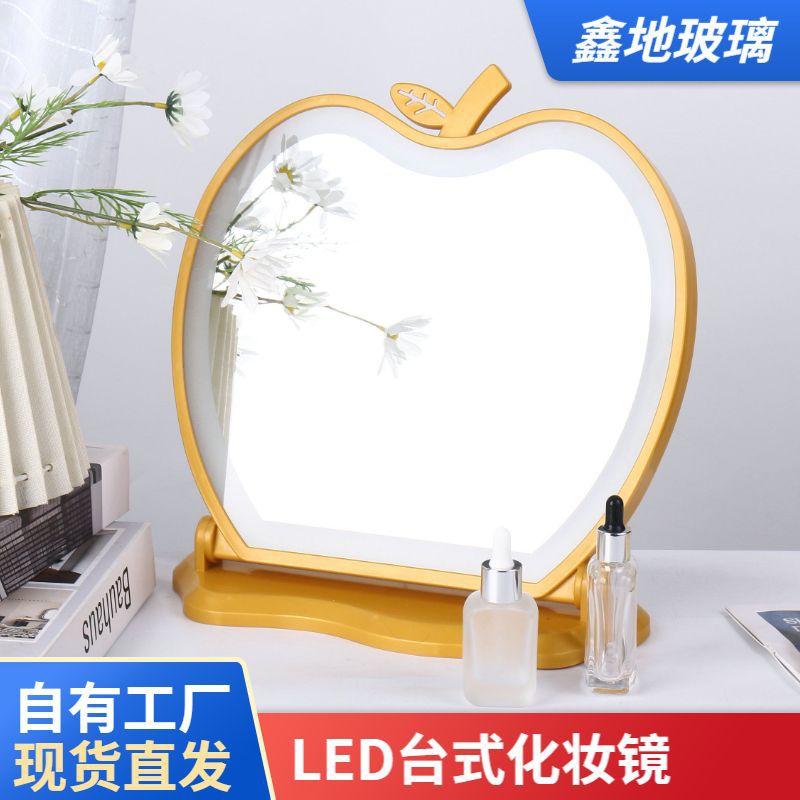 网红苹果镜子化妆镜台式LED卧室镜子带灯桌面智能梳妆镜家用镜子