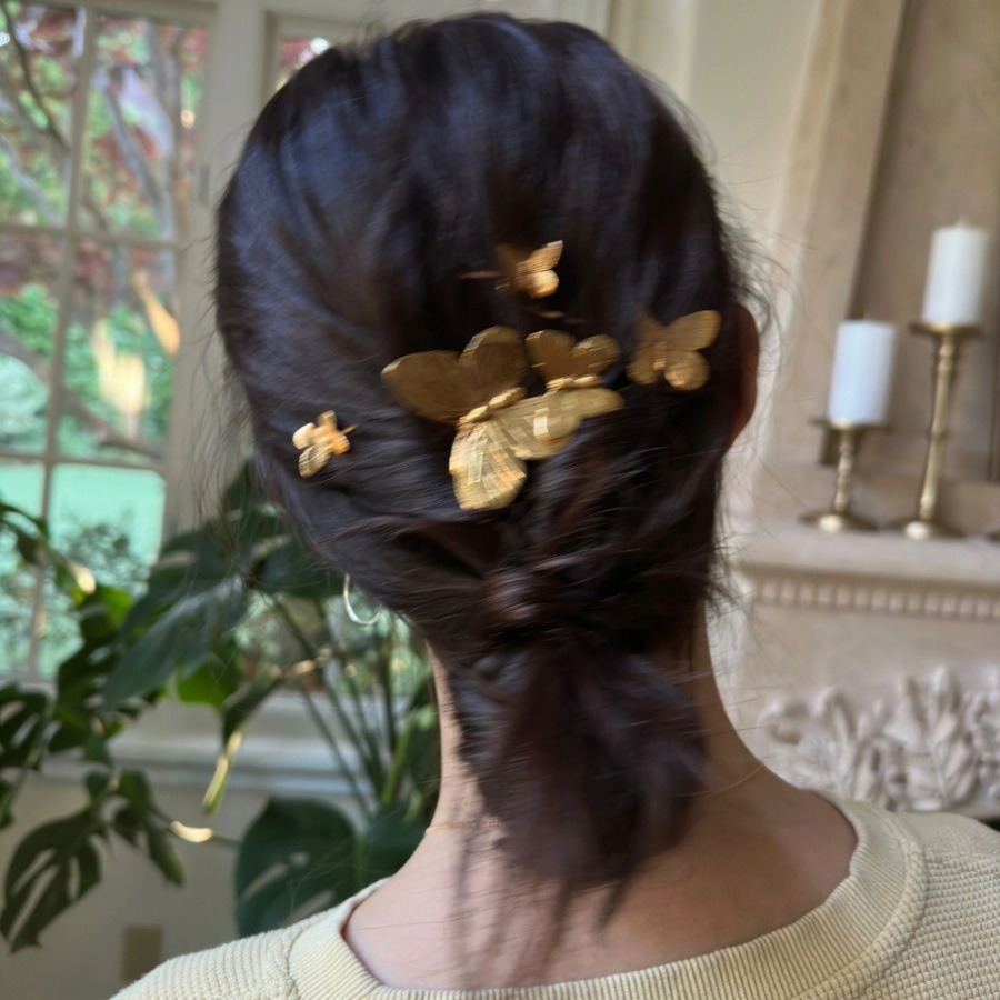 フランス式の優雅な金色の蝶のヘアピンの高級感の小さい大衆の気質のデザイン感の結婚の頭飾りの蝶のヘアピンの髪飾り